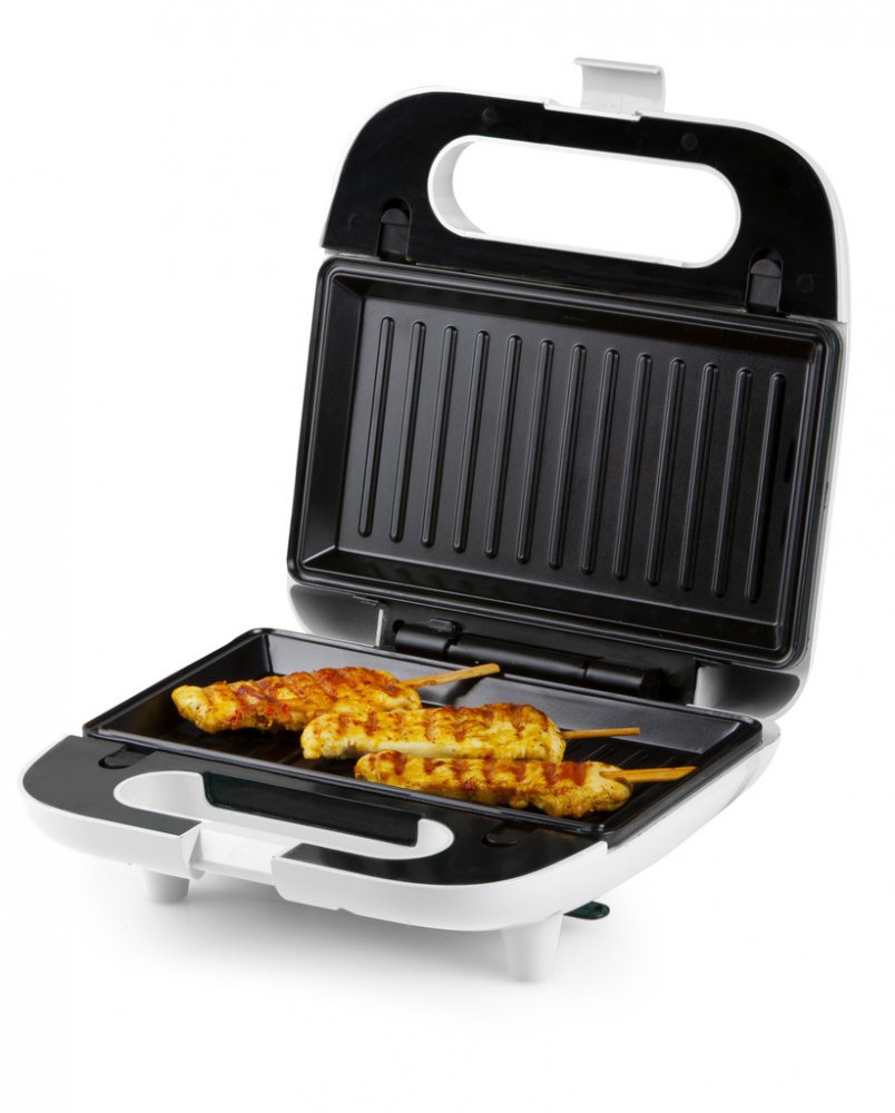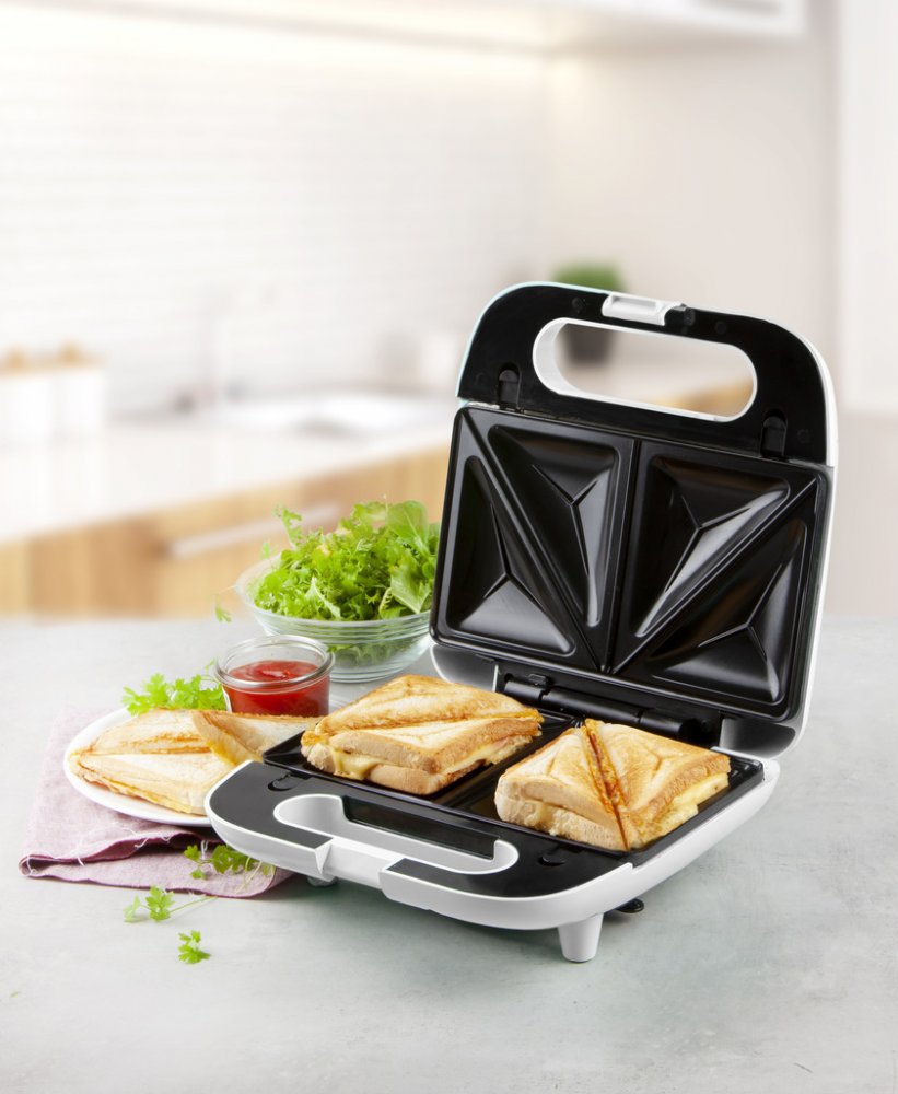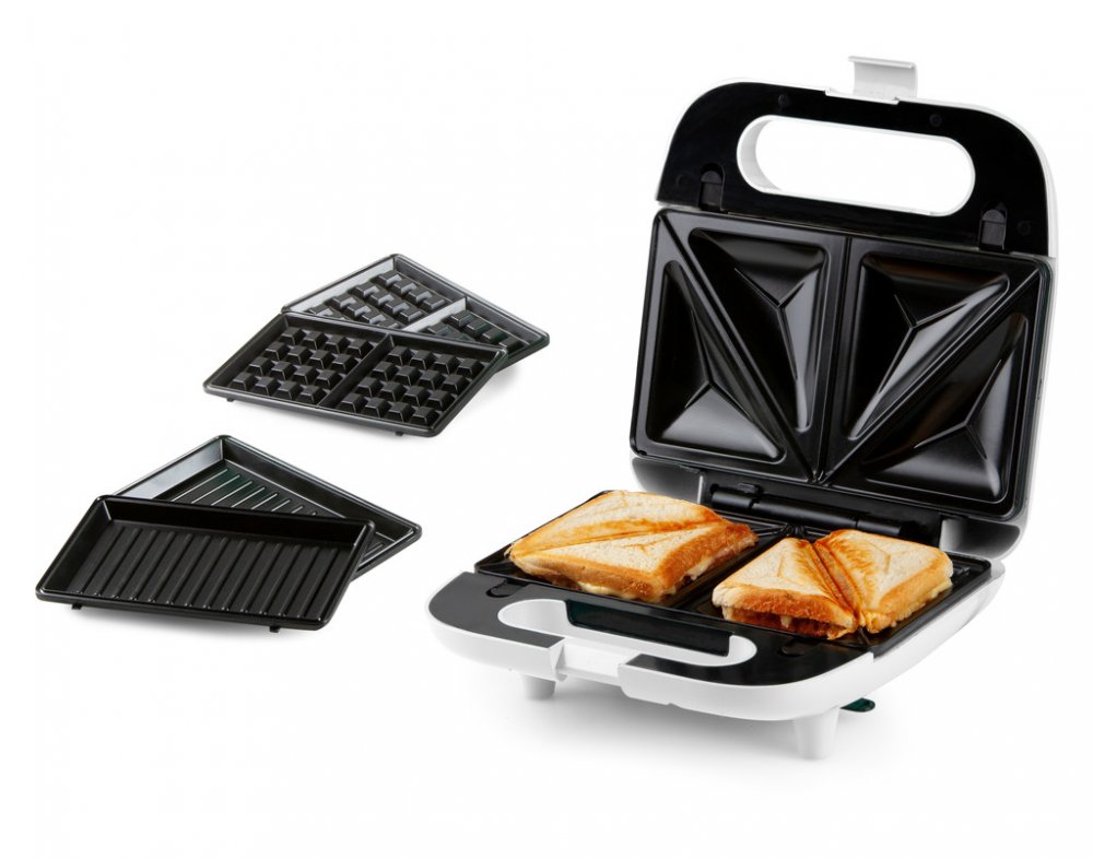 Praktický toustovač s výměnnými deskami představuje 3 produkty v 1: sendvičovač na trojúhelníkové sendviče, vaflovač a gril na přípravu panini, masa, či grilované zeleniny. Díky snadné a rychlé výměně desek budete mít vždy po ruce jeden z těchto tří přístrojů. Na plné nahřátí počkáte jen 3 minuty a můžete začít s přípravou vaší oblíbené svačinky. Nahřátí na provozní teplotu pak signalizuje kontro...
