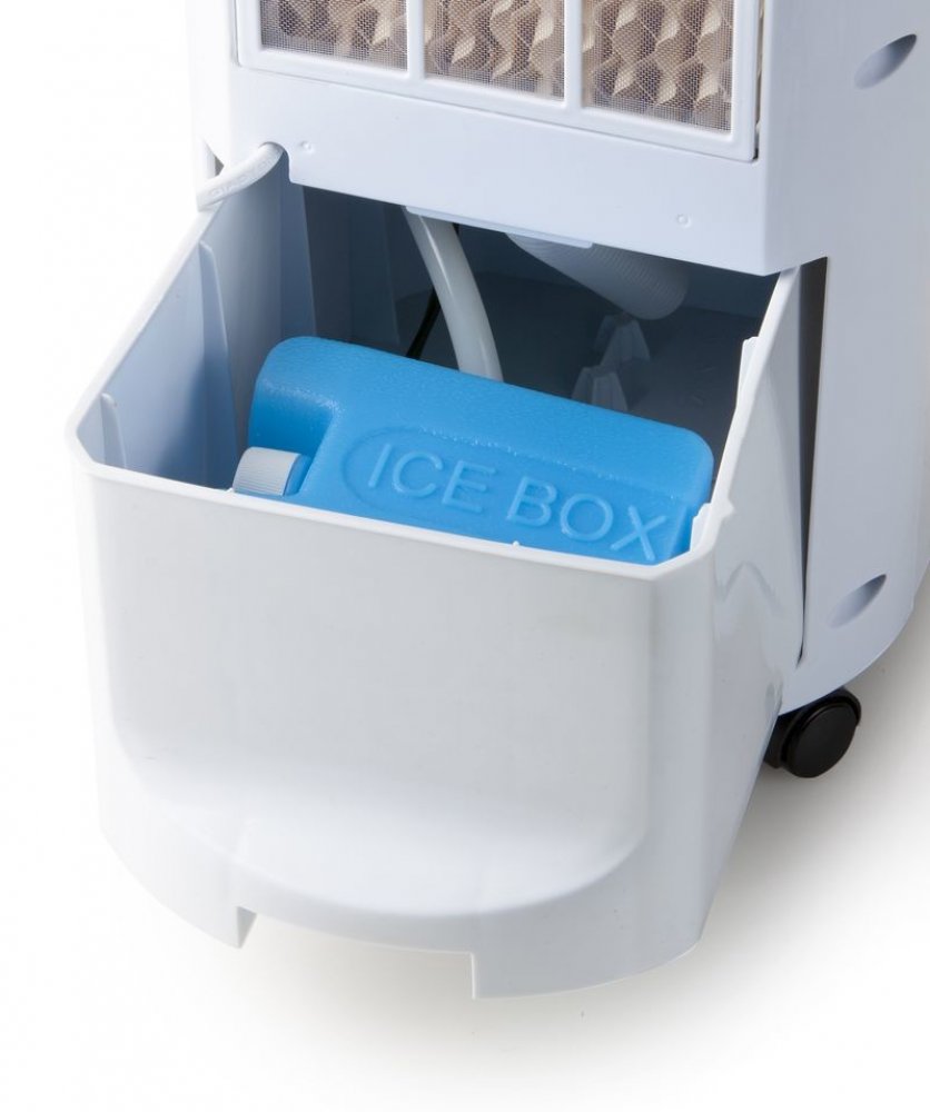 Ochlazovač vzduchu funguje na principu ochlazování vzduchu vodní lázní. Do zásobníku na vodu nalijete co nejstudenější vodu, nebo můžete do vody vložit i speciální nádobky se zmraženou vodou, aby se voda co nejvíce ochladila.