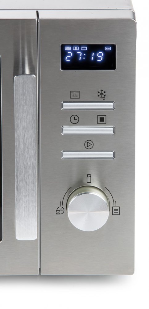 Výkonná mikrovlnná trouba bez jakýchkoliv kompromisů. Na první pohled zaujme vysoce kvalitní broušený nerez čelního panelu s robustním broušeným madlem a velký chromovaný ovladač pro snadné a rychlé nastavení času ohřevu, či teploty horkého vzduchu a všech funkcí. Vnitřní prostor trouby se díky vysoce leštěnému nerezu snadno udržuje čistý. Odkryté topné těleso můžete neustále udržovat snadno v čis...