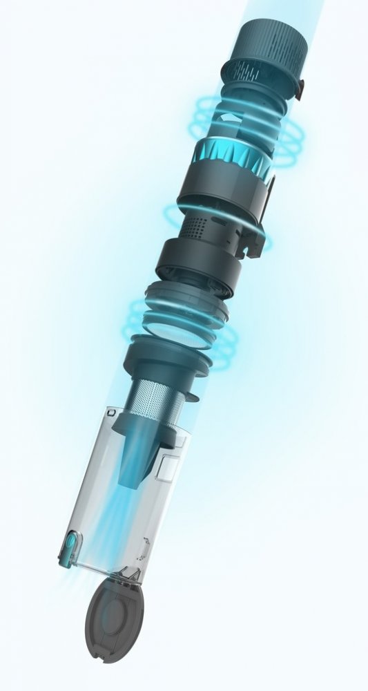 Cyklónový systém filtrace hrubých nečistot a filtrace jemných nečistot, plísní, alergenů a jiných mikroorganismů. Plně rozebiratelný a omyvatelný filtrační systém pro snadné čištění.