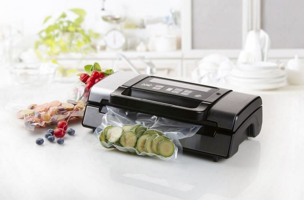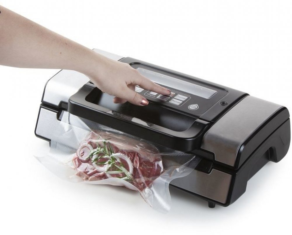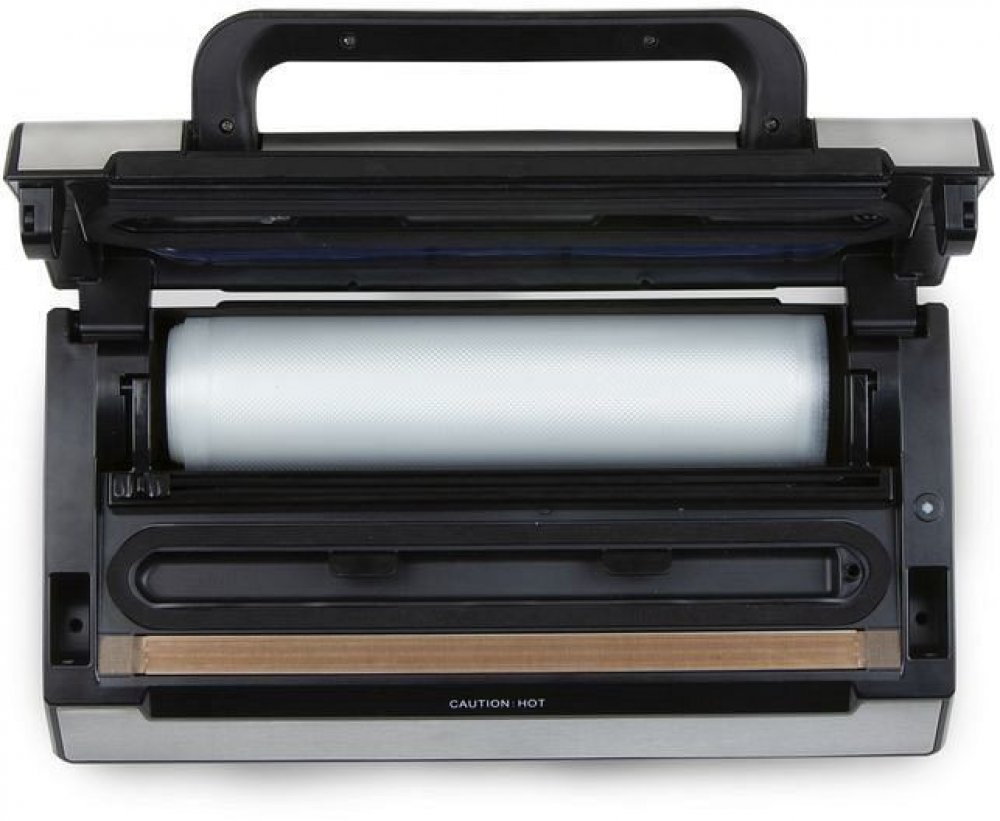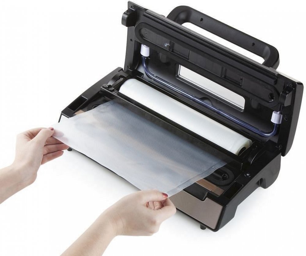 Vakuovačka s marinováním masa a balička potravin s integrovanou řezačkou v jednom se zásobníkem na fólii vám velmi usnadní a zpříjemní časté vakuování a zavařování potravin do sáčků i přípravu masa na grilovaní.