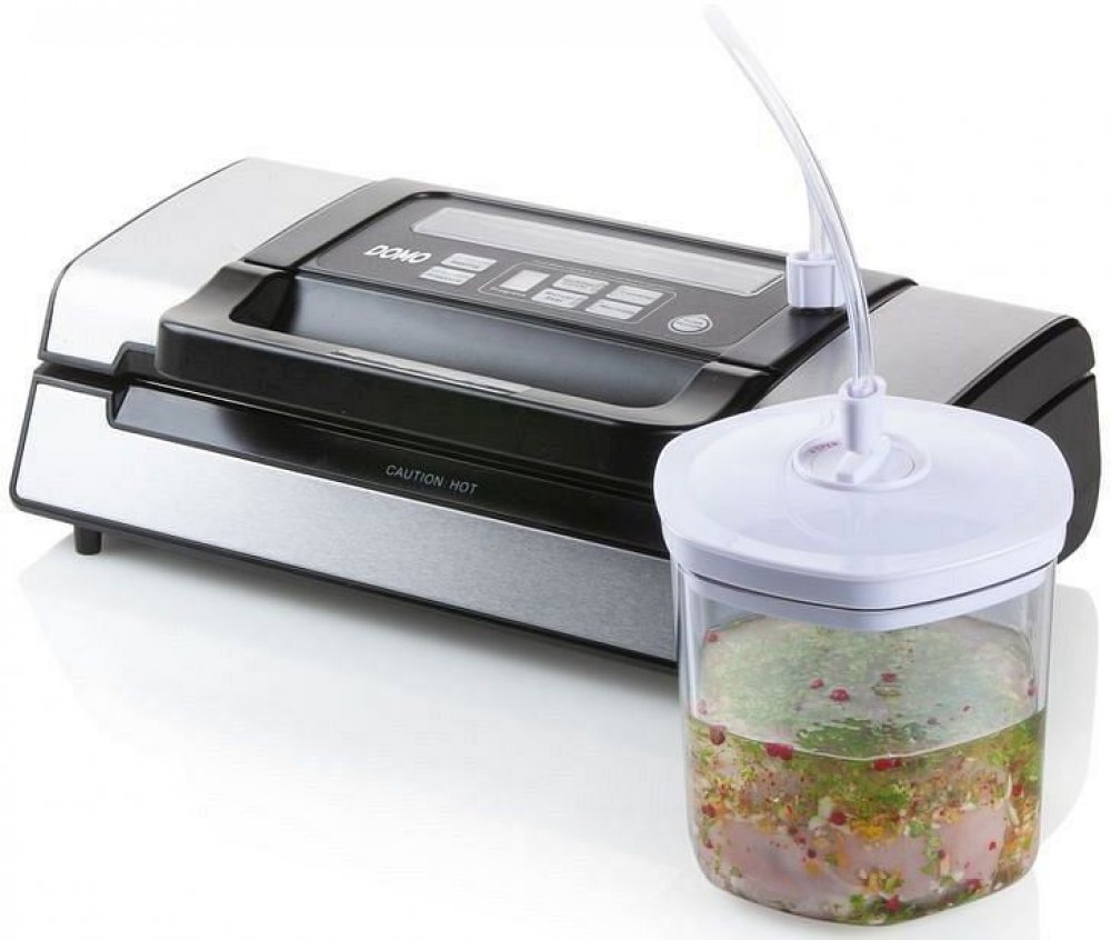 Jako nadstandardní součást balení dostanete k této vakuovačce i vakuovou nádobu ve které lze za použití programu pro marinování masa snadno marinovat maso před grilováním. Program pracuje plně automaticky na principu změn tlaku v nádobě po dobu pěti minut tak, aby se do masa vtlačilo co nejvíce chuti z marinády. Pro ještě lepší výsledky můžete program spustit opakovaně za sebou. Vakuová nádoba přijde také vhod vždy, když bude potřeba uchovat nezpracované suroviny v lednici do dalšího dne.