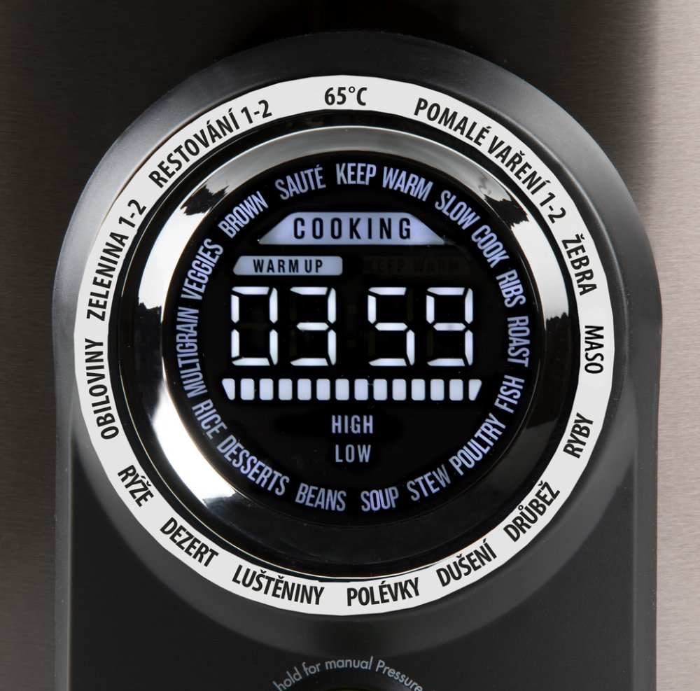 11 programů tlakového vaření: žebra, pečeně, ryby, drůbež, dušení, polévka, luštěniny, dezert, rýže, obiloviny, zelenina