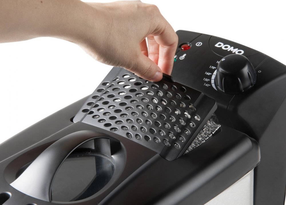 To, že tato fritéza s průhledným víkem a plynulou regulací teploty dokáže upravit suroviny dle vašich představ, to je samozřejmostí. Co však u běžných fritéz samozřejmostí nebývá je hliníkový pachový filtr, který zachycuje pach unikající z fritézy, vyjímatelná fritovací nádoba omyvatelná v myčce na nádobí a dvojité vnější stěny s tepelně izolovanými madly, zabraňujícími popálení.