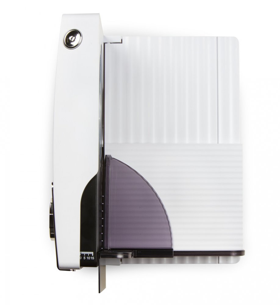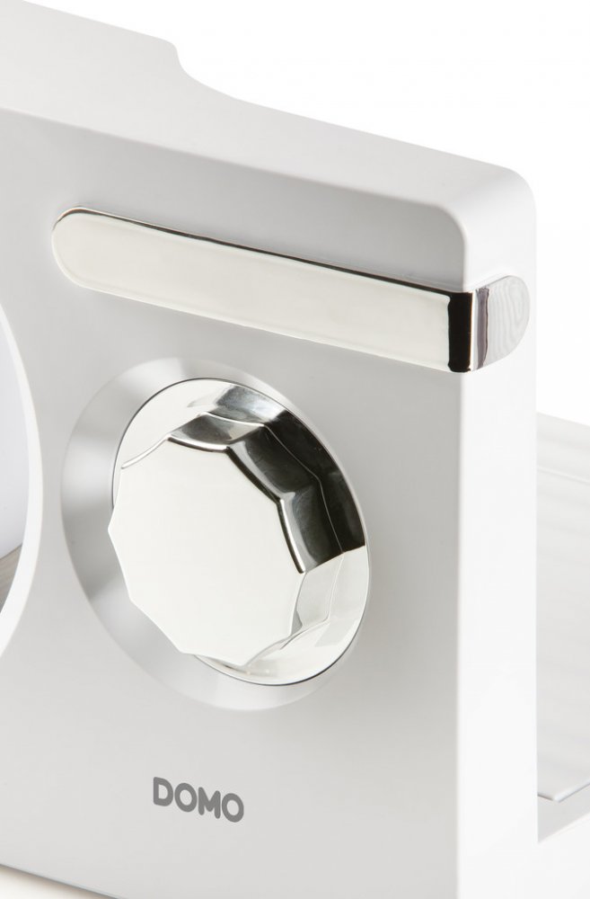 Elektrický kráječ vhodný do domácnosti DOMO DO523S využijete pro krájení potravin u vás doma. S tímto elektrickým kráječem DOMO-ELEKTRO se dá nakrájet sýr, chleba a maso. DOMO DO523S s příkonem 120 W postará se o to, aby byly všechny nakrájené plátky stejně velké. Dosahuje maximální tloušťky řezu 15 mm. Elektrický kráječ s kotoučem zhotoveným z nerezové oceli s průměrem 170 mm je precizní, odolný vůči poškození a nakrájí všechny potraviny, které v kuchyni máte. Krájení pro vás bude hračka díky držáku na potraviny, takže nebudete muset při krájení potravinu držet. Kráječ se chlubí přítomností bezpečnostní pojistky, která zabrání náhodnému spuštění. Skvělým prvkem kráječe je také úložný prostor na kabel. Pro jednodušší čištění se dá nůž odejmout a dostat se tak do jinak nepřístupných míst. Větší bezpečí a pohodlí zajistí protiskluzový povrch. Elektrický kráječ DOMO DO523S o rozměrech 33,2 × 25,5 × 20,2 cm bude se vám hodit pro každodenní používání. Materiál konstrukce u tohoto elektrického kráječe...
