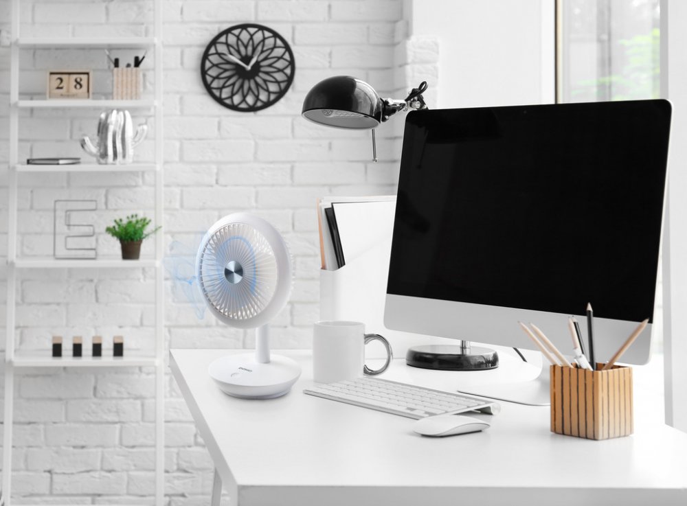 Stolní USB ventilátor v čistě bílé barvě s možností použití i bez kabelu díky vestavěného dobíjecímu akumulátoru. Na plně nabitý akumulátor můžete ventilátor používat až 15 hodin. Pokud nemáte rádi průvan z větráčku ventilátoru, ale chcete si zpříjemnit klima na svém pracovním místě, můžete snadno nastavit ventilátor na foukání přímo do stropu a zlepšit tak cirkulaci chladného vzduchu ve vaší blíz...