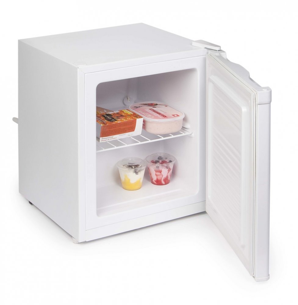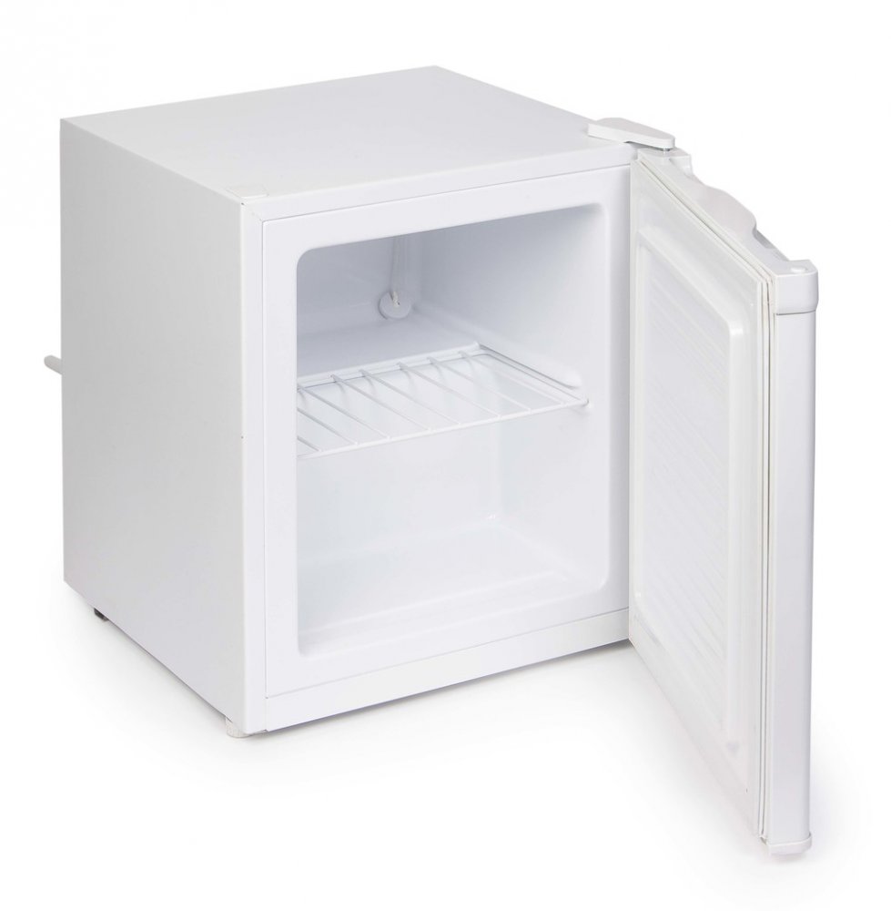 Volně stojící mini mrazák v bílé barvě o celkovém vnitřním objemu 33 l. Velmi úsporná energetická třída D a kompaktní rozměry vhodné pro použití v kancelářích, studentských pokojích, garsonkách i na chatě, nebo v pokoji pro hosty. Otevírání dvířek lze stranově přehodit.