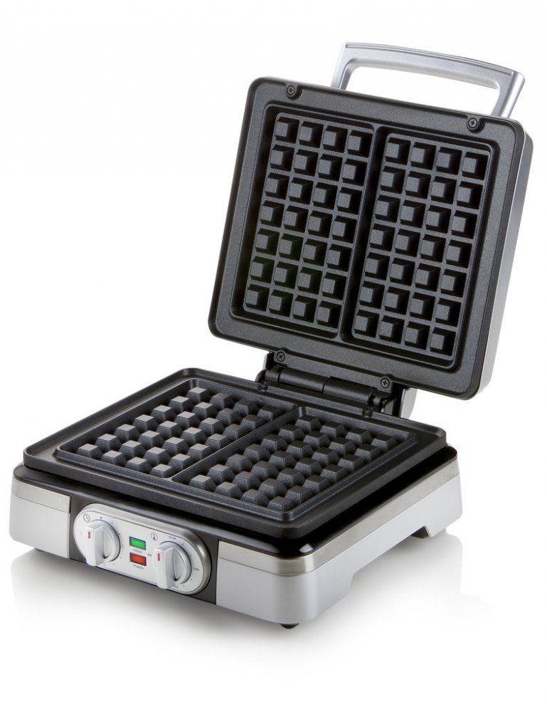 Na sendvičovači se nachází 2 otočné ovladače. S jejich pomocí si snadno nastavíte požadovanou teplotu a délku pečení vaflí. Červená kontrolka vás informuje o nahřívání vaflovače a zelená vybízí k nalití těsta a pečení vaflí. Díky tepelně izolované rukojeti otevřete spotřebič, aniž byste se popálili.