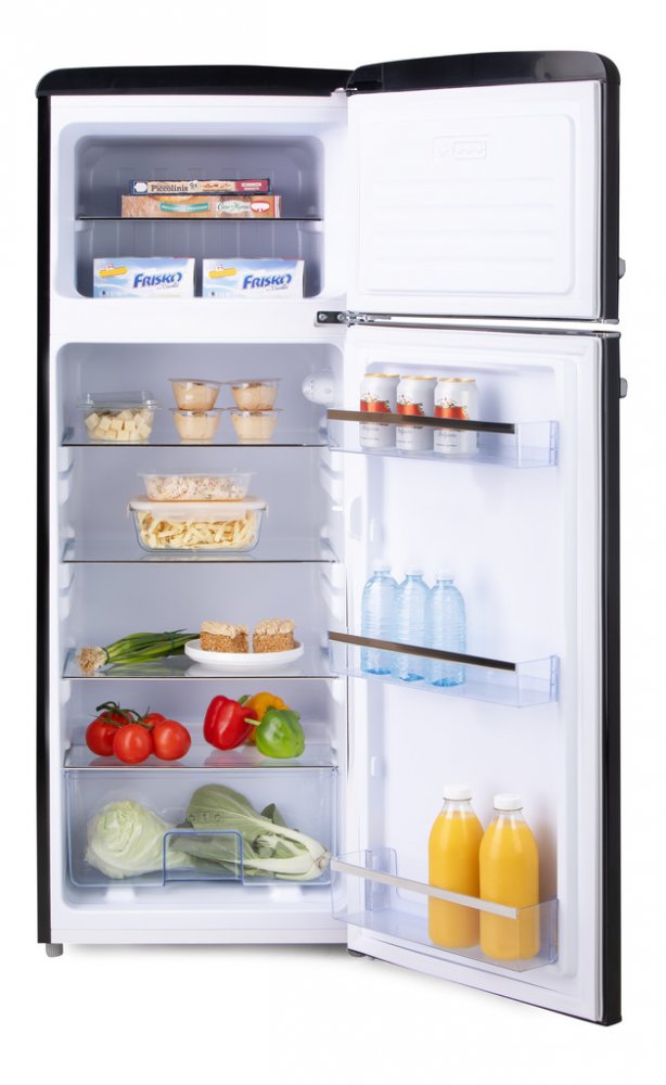 - Provedení lednice: retro kombinovaná s mrazákem nahoře