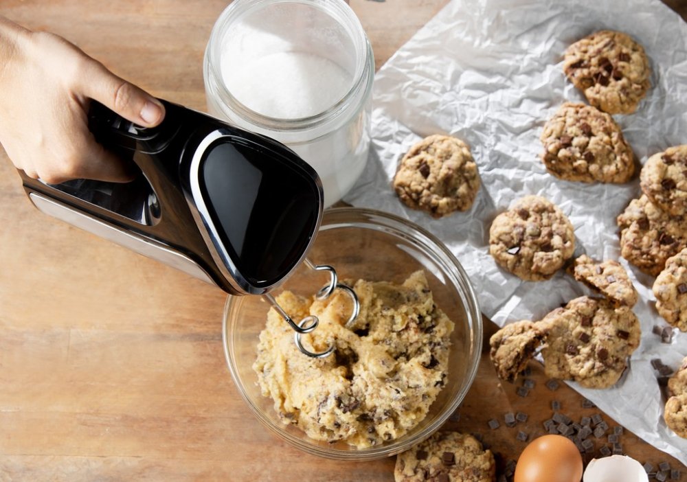 Motor mixéru vyniká i svým kultivovaným chodem s plynulým náběhem výkonu, abyste nepotřísnili ani sebe ani kuchyňskou linku. Pokud si přeci jen bude chtít na chvíli odpočinout, můžete jej odložit na rovnou zadní část. A nakonec, udržet metly a hnětače v čistotě vám pomůže vaše myčka na nádobí.