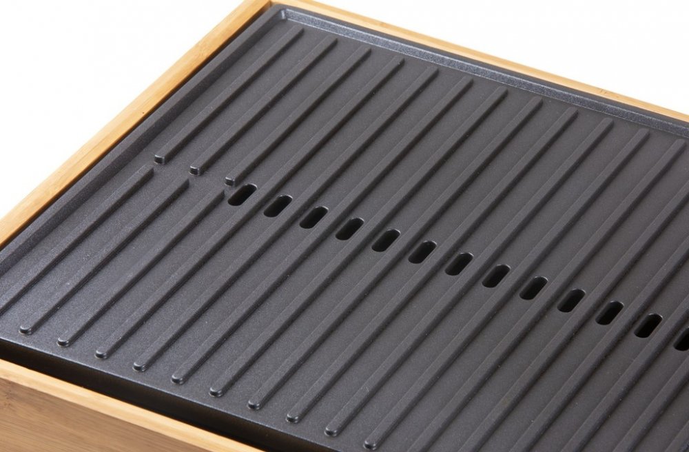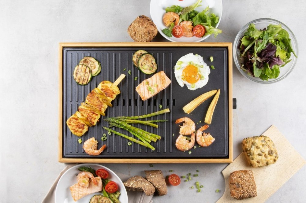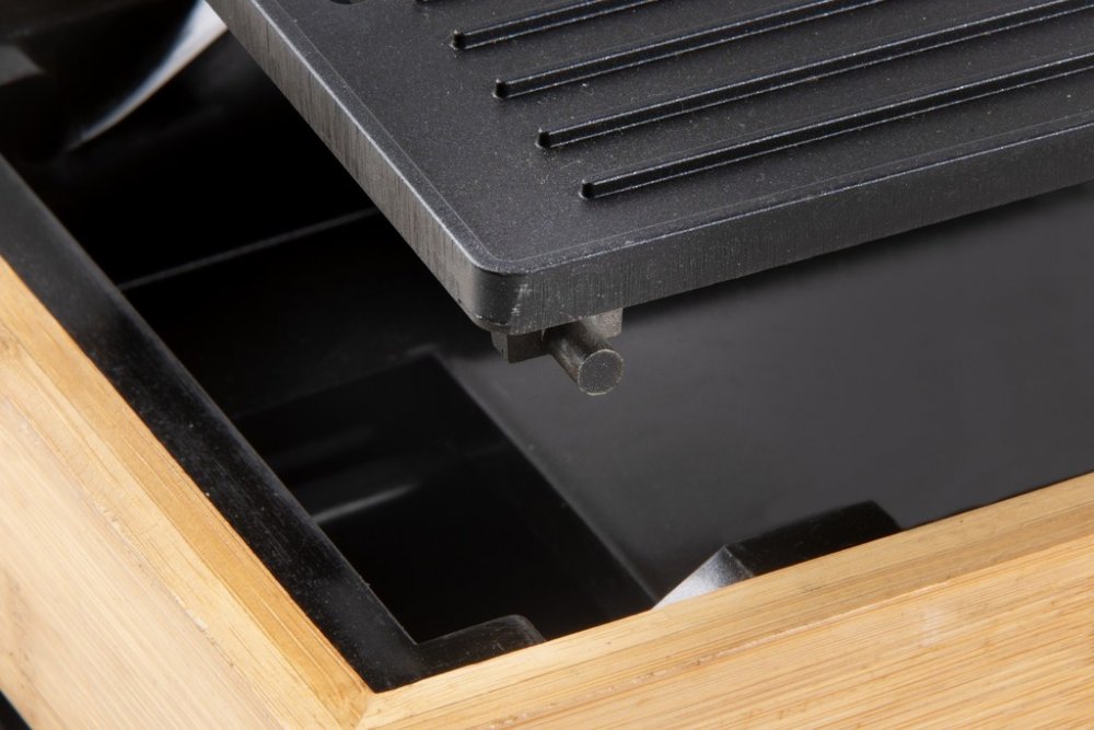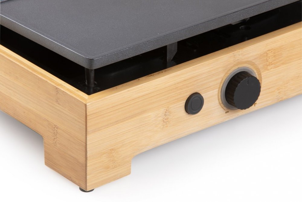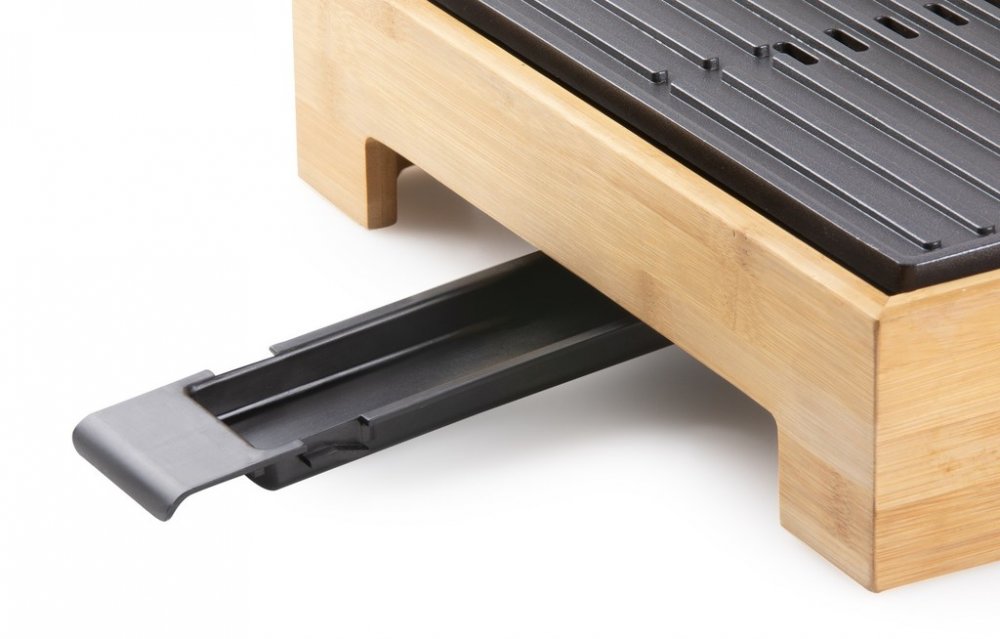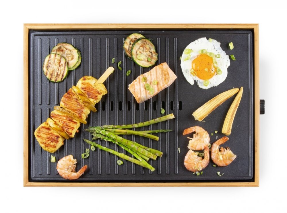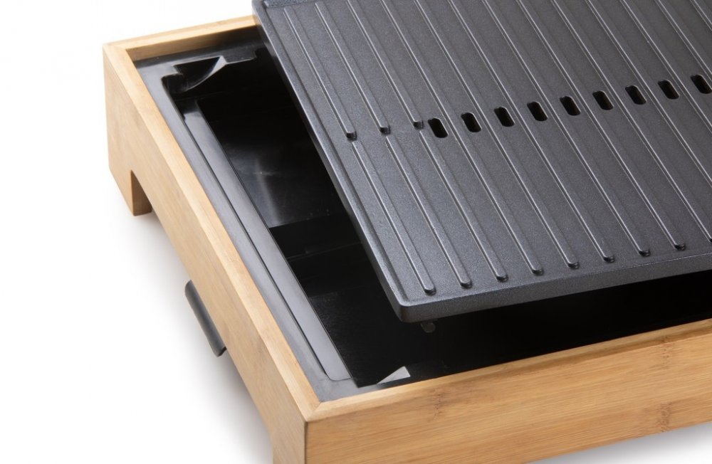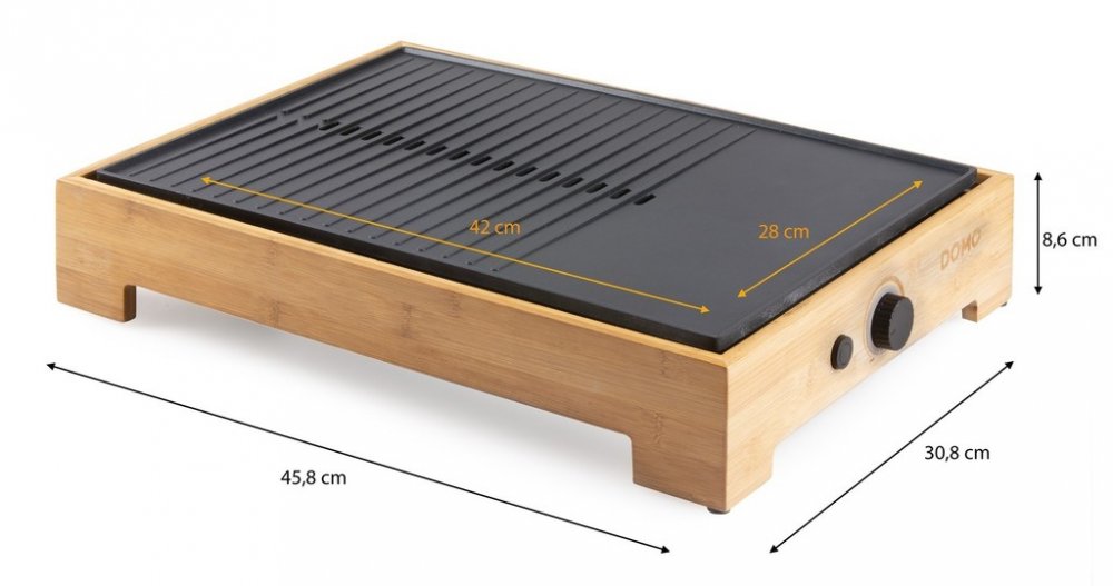 Vneste do svého stolování eleganci a vůni grilovaných specialit s elektrickým grilem DOMO DO9271G z designové řady Bamboo Style. Spojení přírodního bambusového rámu a černé pečicí plochy z tlakově litého hliníku vytváří nejen estetický doplněk kuchyně nebo jídelního stolu, ale i plně funkční a výkonný přístroj. Grilovací plocha o rozměru 42 × 28 cm je ideální pro přípravu jídel při rodinné večeři, večeru s přáteli nebo klidném večeru ve dvou.Pečicí plocha s kombinací vroubkovaného a hladkého povrchu je opatřena nepřilnavou keramickou vrstvou bez PFOS, což usnadňuje přípravu i následné čištění. Topné těleso je zalisováno přímo do pečicí desky, takže dochází k rovnoměrnému přenosu tepla bez zbytečných ztrát. Plynule nastavitelný termostat s rozsahem 0–230 °C a příkon 1 800 W zaručují rychlé nahřátí i snadné udržení zvolené teploty po celou dobu grilování.Gril disponuje odnímatelnou nádobkou na přebytečný tuk a šťávy a zvýšeným okrajem pečicí plochy, který zabraňuje přetékání. Indikační kontrolka vás informuje o stavu nahřátí – při zahřívání bliká, po dosažení požadované teploty trvale svítí. Protiskluzové nožičky pak zajistí stabilitu při manipulaci. DOMO DO9271G je ideální volbou pro zdravé a pohodlné grilování bez kouře a zbytečného nepořádku.Parametry a specifikace
