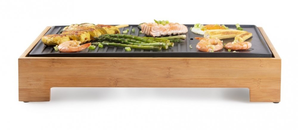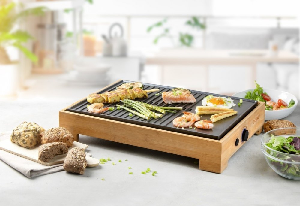 Vneste do svého stolování eleganci a vůni grilovaných specialit s elektrickým grilem DOMO DO9271G z designové řady Bamboo Style. Spojení přírodního bambusového rámu a černé pečicí plochy z tlakově litého hliníku vytváří nejen estetický doplněk kuchyně nebo jídelního stolu, ale i plně funkční a výkonný přístroj. Grilovací plocha o rozměru 42 × 28 cm je ideální pro přípravu jídel při rodinné večeři...