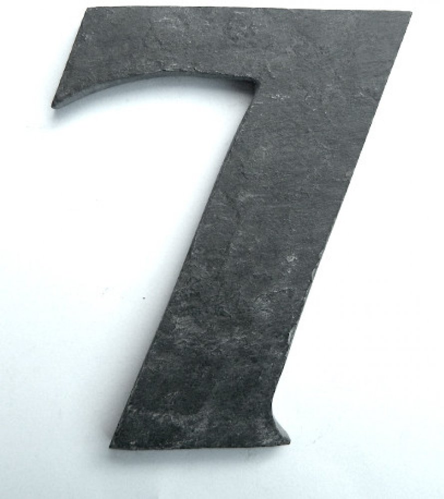 Domovní čísla z kamene. Materiál: španělská břidlice černá, 300 mil. let stará zkrystalizovaná usazenina na tehdejším mořském dně. Výška čísla 12cm a tloušťka materiálu 6 mm. Celková šířka čísla je 9 cm. Struktura povrchu se může lišit, je to dáno vlastnostmi materiálu, který má přirozenou tendenci loupat se po vrstvách. Na povrchu se tak vyskytují šupiny, vlásečnice, či nerovnosti, které velmi efektně dokreslují přirozenost materiálu a Vaše číslo tak bude naprosto originální. Řezání čísel z ploten břidlice probíhá vysokotlakým vodním paprskem (cca 2500 bar), čímž se docílí přesného řezu a zároveň obrovský tlak při řezání prověří pevnost řezaného materiálu. Upevnění čísla je individuální podle typu podkladu (fasády). Většinou se však k přilepení používají běžná průmyslová či stavební lepidla k lepení kamene, rovněž můžeme doporučit kvalitní tekuté hřebíky a nebo můžete zakoupit lepící sadu přímo u nás. Na případné jiné řešení kotvení se nebojte zeptat, rádi Vám poradíme.
