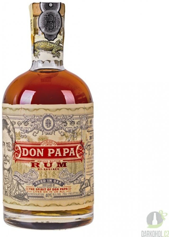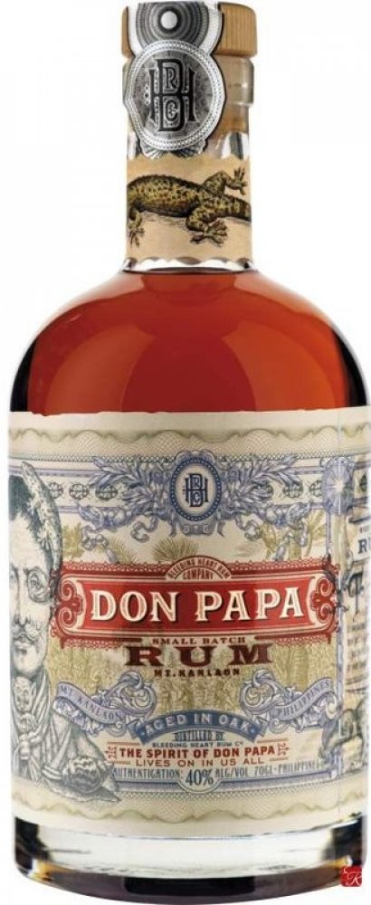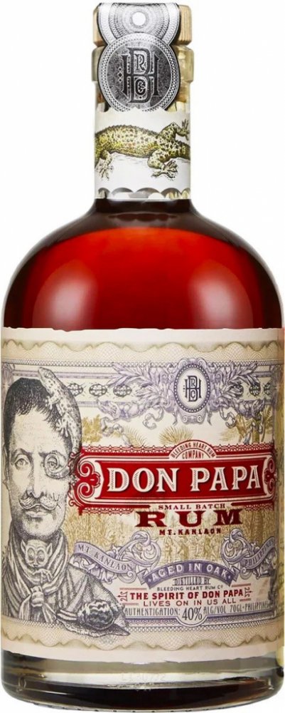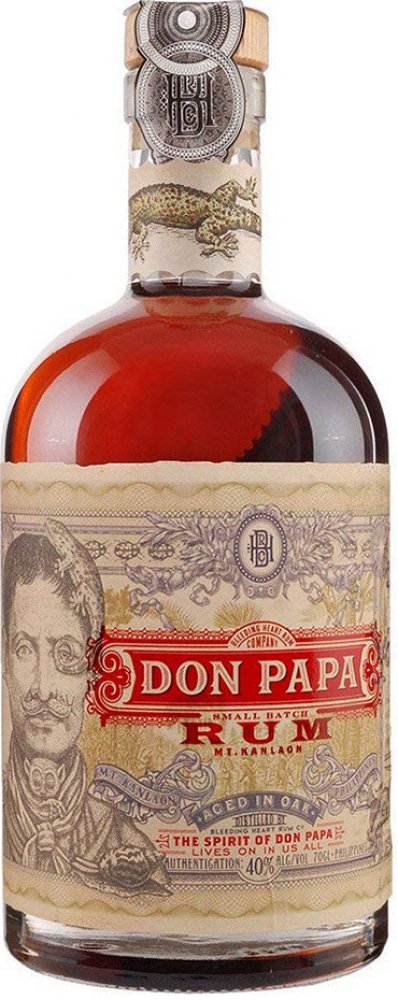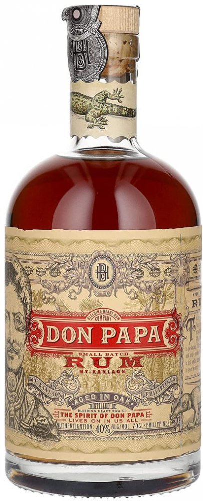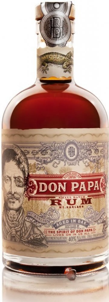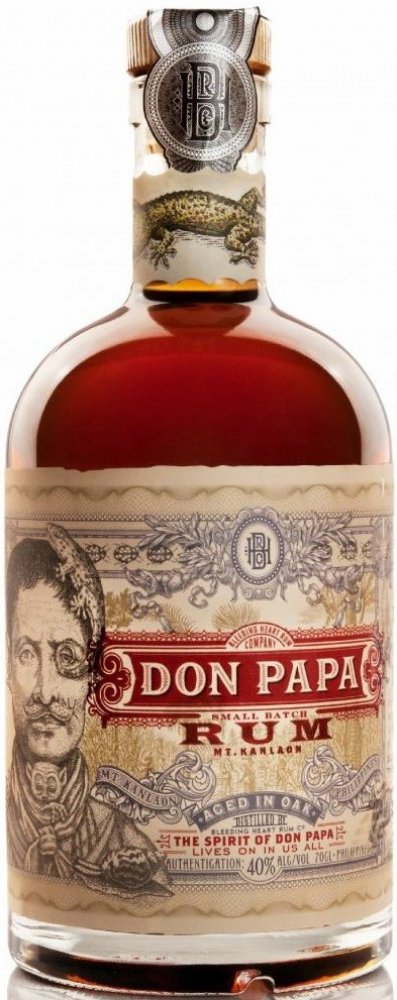 Filipínský rum Don Papa si v sudech poležel poctivých 7 let a vypůjčil si tam zlatavě jantarovou barvu, jemnou, ovocnou vůni a hebkou chuť s příjemně dlouhým závěrem. Na patře potěší výraznými tóny vanilky, kandovaného ovoce a medu. Nejvíce si tuto dobrotu vychutnáte při pokojové teplotě, nebo s velkou kostkou ledu, která se bude pomalu rozpouštět a odhalovat další tváře téhle dobroty. Filipíny. Ostrovy, které prosluly famózní cukrovou třtinou. Tropické klima ostrova Negros, spolu s úrodnou vulkanickou půdou na úpatí hory Mt. Kanlaon se postaraly o skvělé podmínky pro růst cukrové třtiny. A ta dala vzniknout jednomu z nejoblíbenějších rumů, který vzdává hold filipínskému bojovníku za nezávislost, Papa Isiovi. Třtina, která se používá pro výrobu Don Papa rumu, má výjimečně vysoký obsah cukru a výsledkem jejího zpracování je tekuté černé zlato. Melasa. Po fermentaci a destilaci přichází na řadu důkladný odpočinek v pečlivě vybrané kombinaci prvně plněných sudů po bourbonu a opálených sudech z amerického dubu. Vyšší teploty při zrání zařídí intenzivnější kontakt dřeva s rumem a výsledkem je intenzivní, bohatá chuť a temná barva. V poslední fázi se pak rum filtruje přes uhlí.