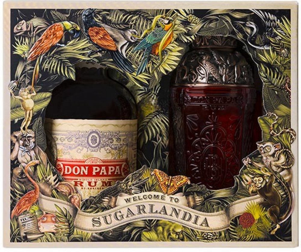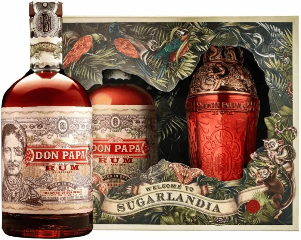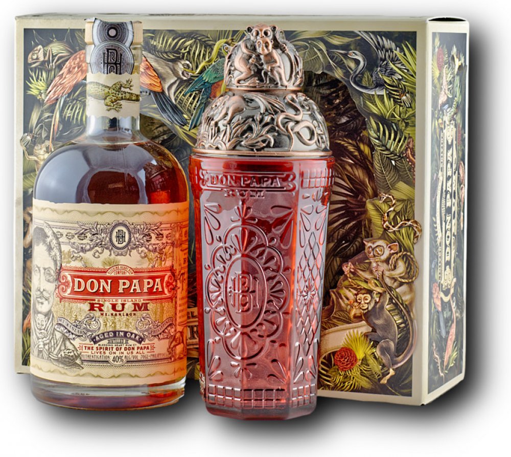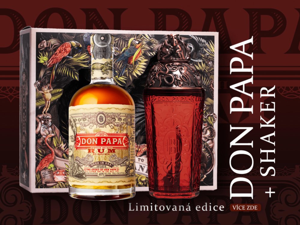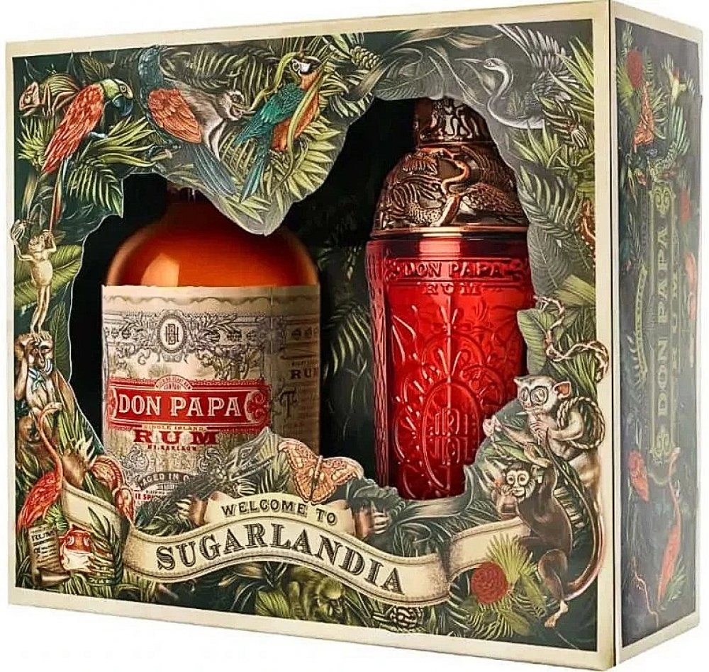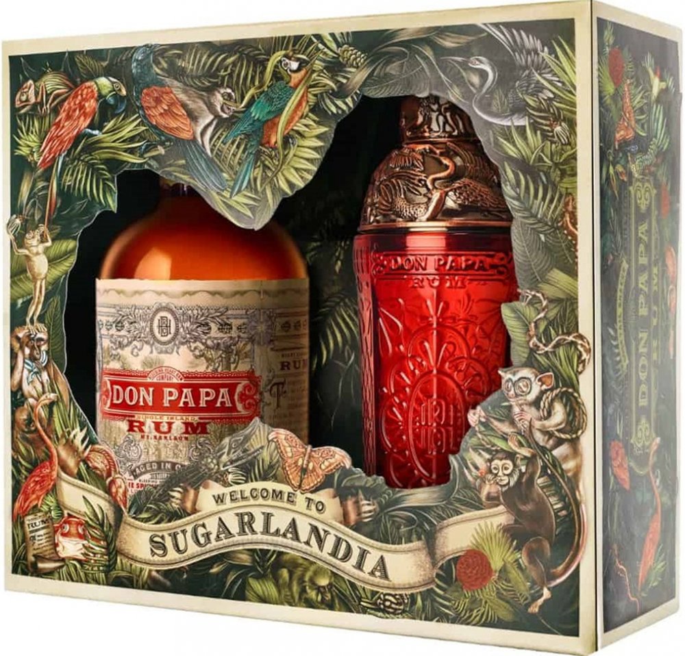 Originální dárkové balení prémiového filipínského rumu Don Papa a shakeru se stejným designovým dekorem. 7-letý filipínský rum Don Papa se vyrábí na úpatí aktivní sopky Mt.Kanlaon, kde se mele nejjemnější cukrová třtina na výrobu sladké melasy. Po sklizni, fermentaci a destilaci je smíchán Master Blenderem a následně naplněn do lahví s pěkným designem.