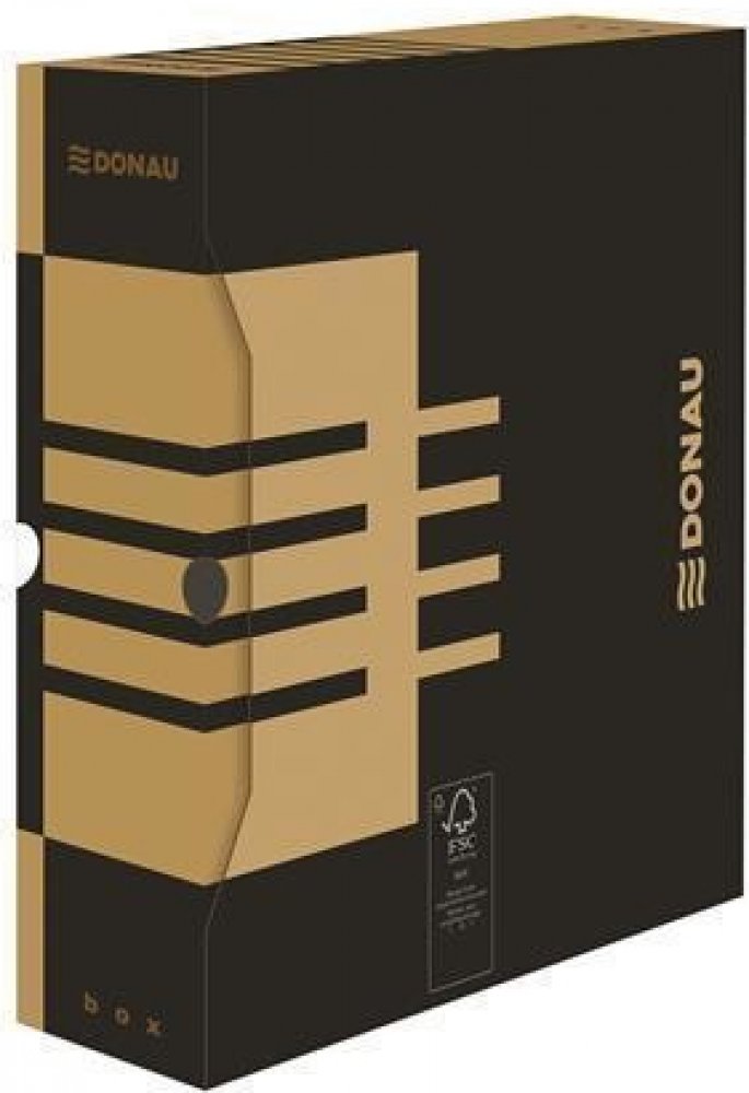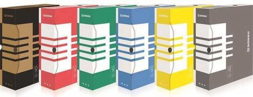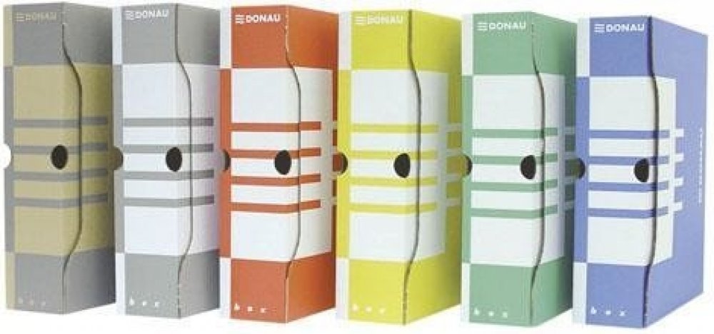 Standardní box pro uložení pákového nebo kroužkového pořadače. Box je vyroben ze 3vrstvé lepenky (390g/m²) s kapacitou cca 900 listů (80g/m²). Šířka hřbetu 100 mm. Lze skladovat rozložení, snadné sestavení. Stabilní na kratké i delší straně. Pro snadnou manipulaci jsou k dispozici 2 otvory pro vyjmutí obsahu z boxu a 2 pro pohodlné vyjmutí boxu z úložné krabice. Možnost popisu na 5 plochách.