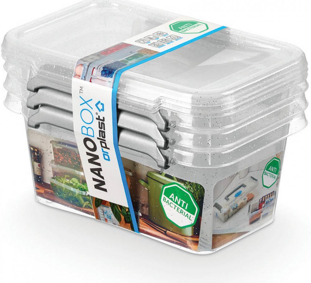 Nanobox je antibakteriální box s obsahem stříbra. Ionty stříbra obsažené v plastu, vč. rukojetí, zámků a víka, účinně chrání proti plísním, široké škále bakterií a jiných patogenů. Ideální pro využití: veřejná místa, - školy, školky, a hygienicky náročných provozů vč. zdravotnických zařízení. Uzavřená nádoba je bezpečnější pro zdraví a pomáhá udržovat její obsah svěží a čistý. Materiál: Polypropyl...