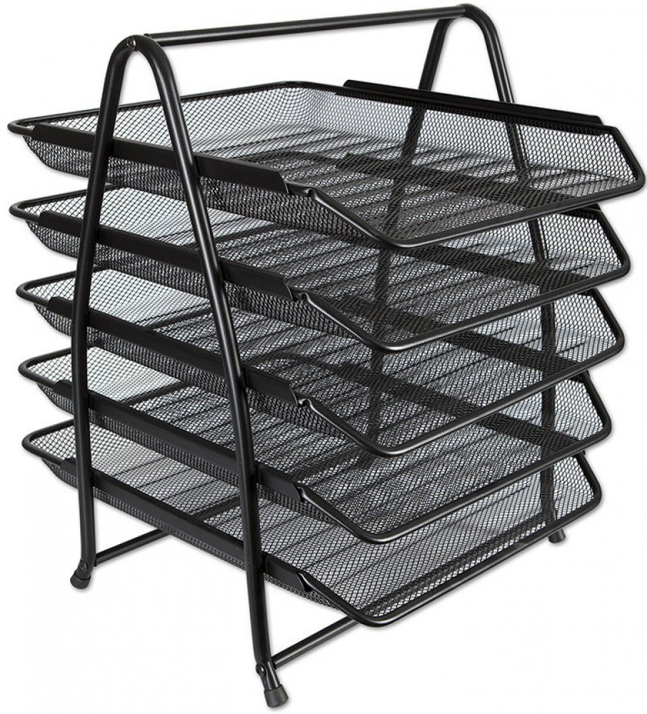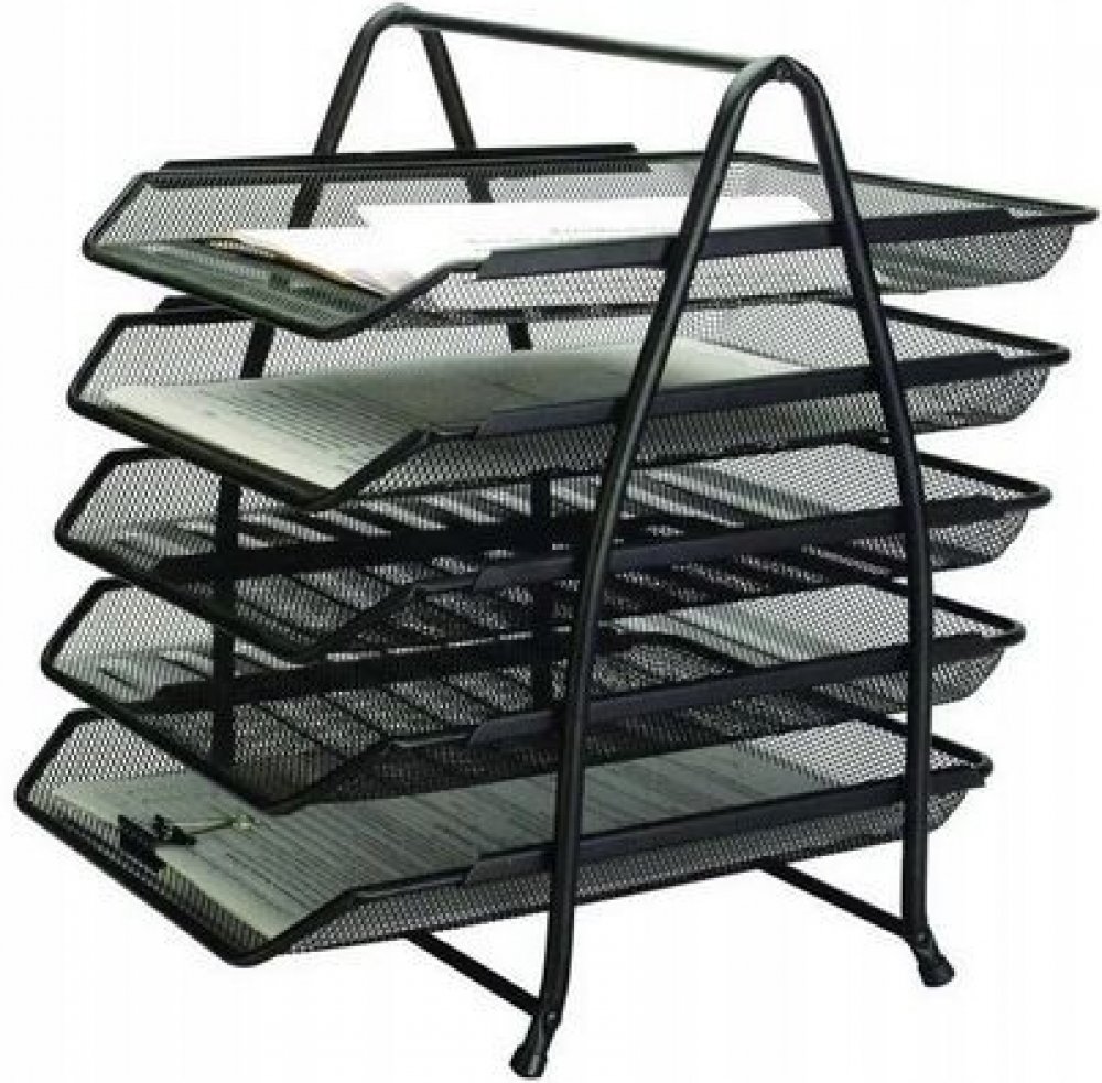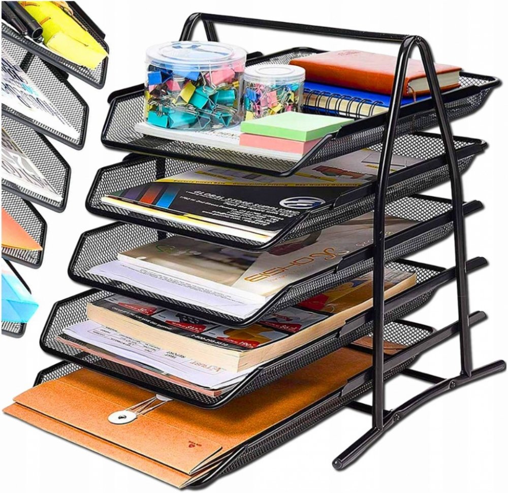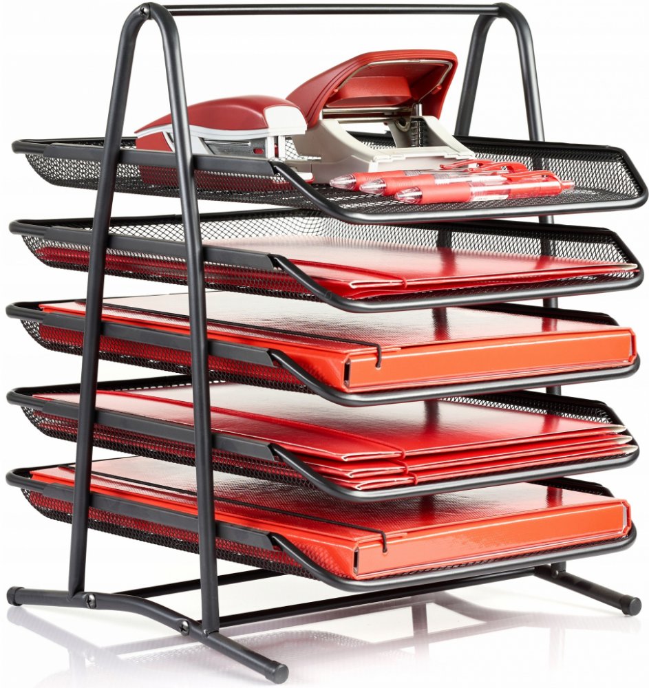 Kovový odkladač se třemi policemi je elegantním doplňkem do kanceláře a home office. Odolná, pevná a stabilní konstrukce je doplněna plastovými koncovkami, které chrání podložku.