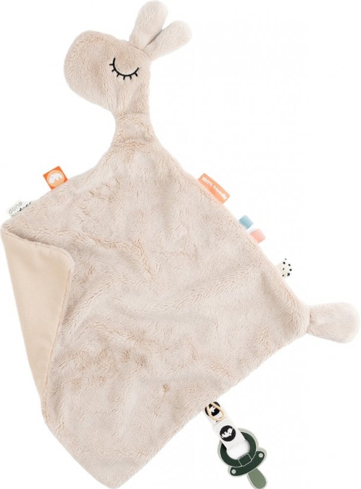 Mazlivá žirafka Raffi pomůže ukolébat každého ospalého drobečka. Měkoučký muchláček od Done by Deer se hodí do jakékoliv postýlky či kočárku. Pro zvědavé prstíky má po stranách látkové nášivky s různými texturami, a na spodní straně je připevněné praktické poutko na dudlík. Žirafa Raffi se tak stane věrným přítelem vašeho miminka už od jeho prvních měsíců.