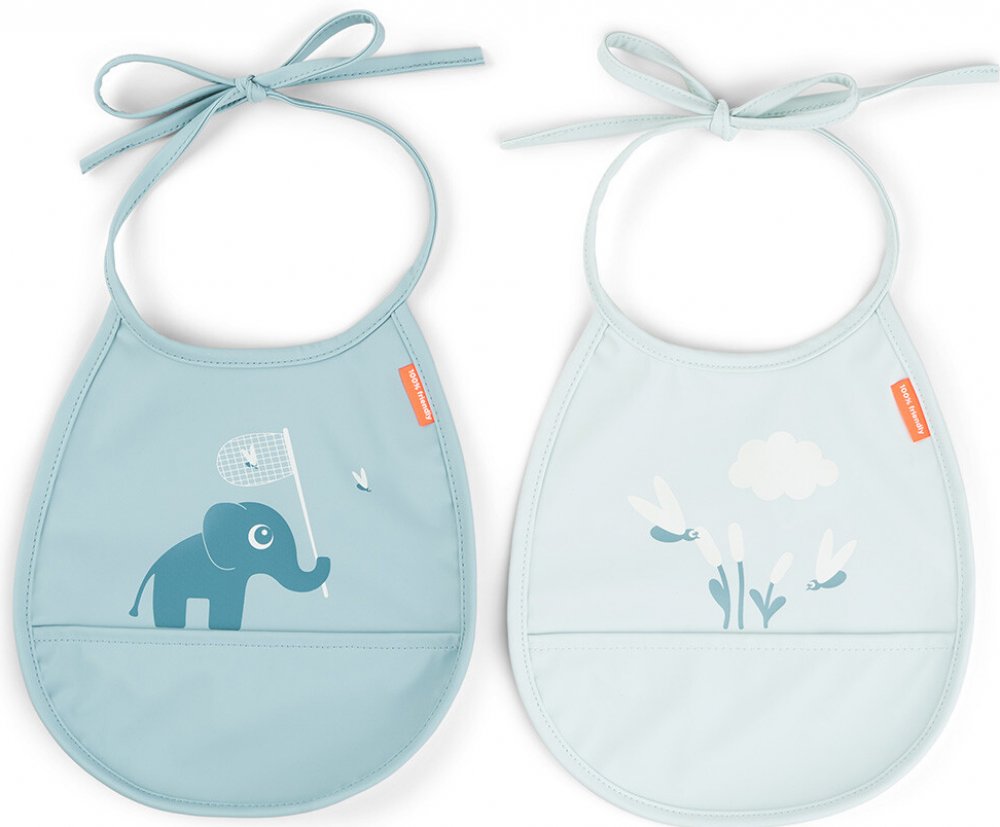 Díky voděodolnému povrchu poskytují vynikající ochranu oblečení vašeho dítěte a po jídle se snadno otírají. Vestavěná kapsa je ideální pro zachycení jakéhokoli upuštěného jídla a pomáhá minima...