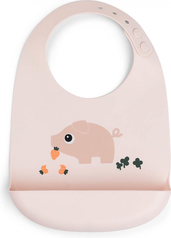 Prasátko Pigee vykukuje z praktického silikonového bryndáčku - připravený zachytit každý drobeček. Bryndáček je voděodolný, snadno se otírá. Kapsa zachytí padající jídlo a ušetří vám spoustu času při úklidu. Bryndáček je vyroben z potravinářského silikonu. Je měkký a pohodlný na nošení pro nejmenší.