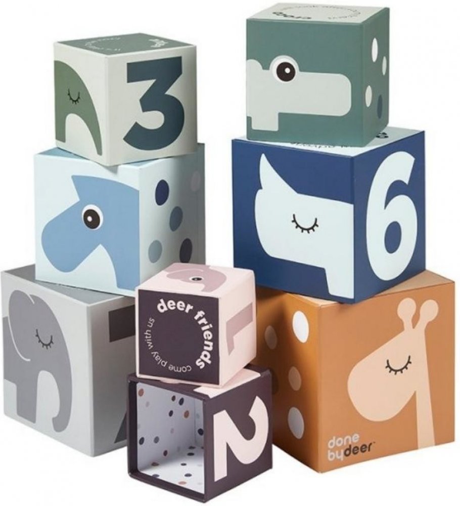 Nechte vaše nejmenší se rozvíjet za pomoci stohovacích kostek Done by Deer Deer friends. Barevné kostky z kolekce Deer friends mají na každé straně jiný typ ilustrace, pro nejmenší je důležité naučit se poznávat zvířátka a barvy. Pro větší raubíře je na místě trénink počítání a stavění stabilní věže a pro předškoláky kostky skrývají základní číslice.