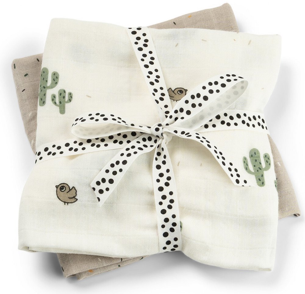 Sada dvou zavinovacích plenek zdobených roztomilým potiskem Lalee, Birdee a kaktusy. Organické mušelínové zavinovačky s certifikací GOTS jsou pohodlné, prodyšné a roztomilé - nezbytné pro každého nového rodiče. Použijte zavinovačky k napodobení bezp...