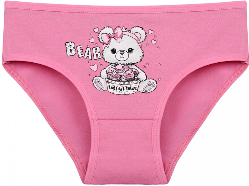 Dětské bavlněné kalhotky Bear. Dětské kalhotky klasického střihu jsou pohodlné a slušivé, zdobí je obrázek medvídka. Obzvláště oceníte materiálové složení - 95% bavlna a 5% elasten. Použitý materiál je příjemný a poddajný na dotek.