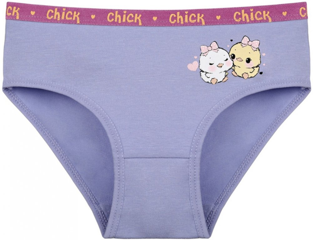Dětské bavlněné kalhotky Kuře. Dětské kalhotky klasického střihu jsou pohodlné a slušivé, zdobí je obrázek kuřete. Obzvláště oceníte materiálové složení - 95% bavlna a 5% elasten. Použitý materiál je příjemný a poddajný na dotek.