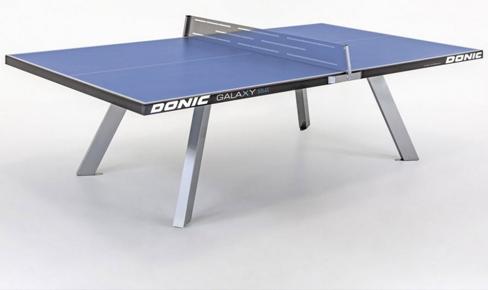 Venkovní stůl na stolní tenis značky DONIC. Vrchní deska je vyrobena z melaminu o síle 10 mm v modré barvě. Odolná vůči venkovním vlivům. Deska je vyztužena rámem o síle 50 mm. Kvalitní nohy vyrobené z kovu v chromovaném provedení. Nohy lze pomocí šroubů připevnit k podlaze či povrchu. Kvalitní integrovaná síťka vyrobená z ocelového plechu, která zůstává na stole.