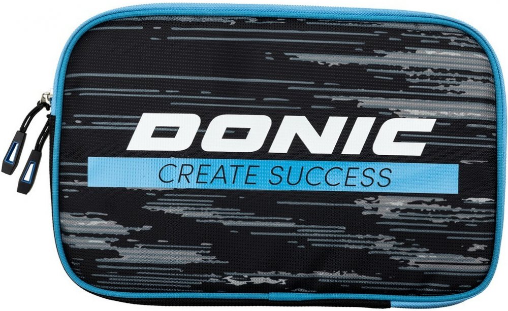 Pouzdro na 2 pálky Pop z kolekce DONIC 2023. Vyrobeno z kvalitního mikrovlákna Jacquard 600D. Barva: černá/modrá