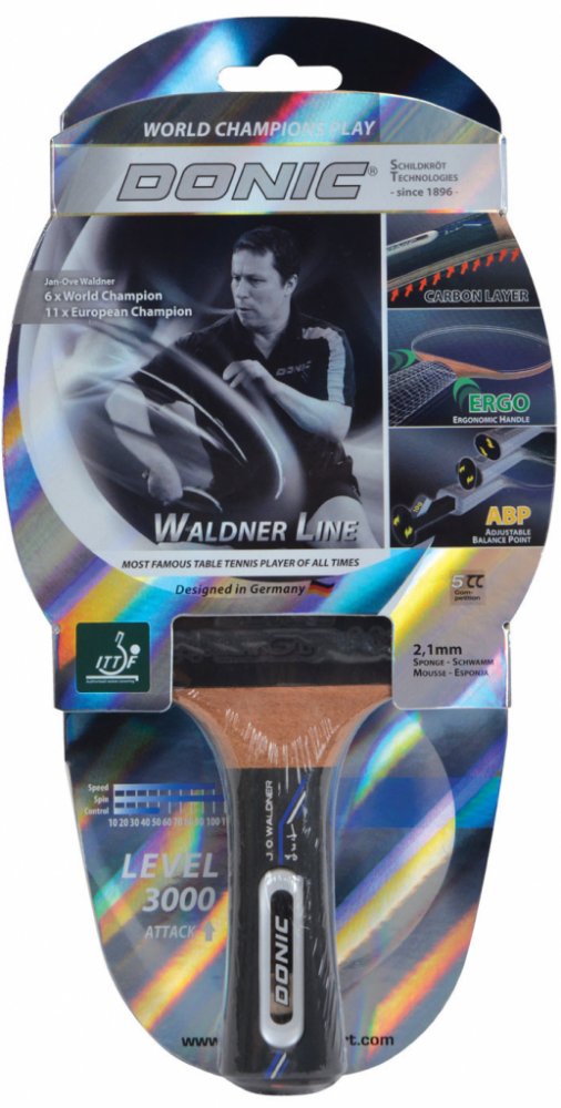 Pálka na stolní tenis Donic Waldner 3000 751803 Pingpongová raketa Donic určená pro pokročilé hráče, kteří preferují útočný styl hry. Ergonomický tvar rukojeti vám poskytne pohodlí během hry. Jeho zaoblený tvar eliminuje tlak na ruku. Kromě toho má rukojeť systém ABP - systém individuálního vyvážení. Tato raketa je určena pro pokročilé a útočné hráče, kteří hrají s dobrou rotací a vysokou rychlostí. Technická data: Wood: Competition Carbon (5CC) Houba: 2,1 mm Rychlost: 100 Rotace: 110 Ovládání: 50 ITTF schváleno