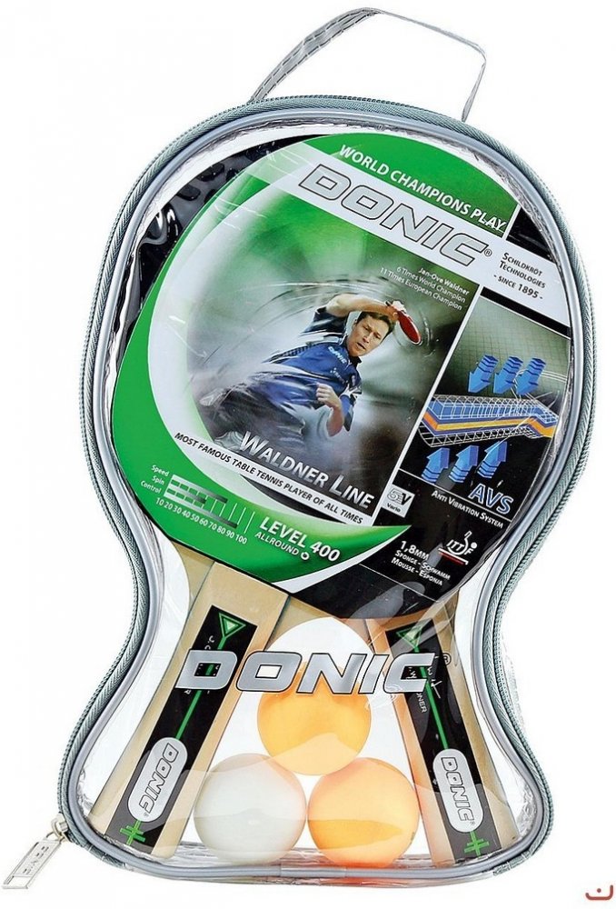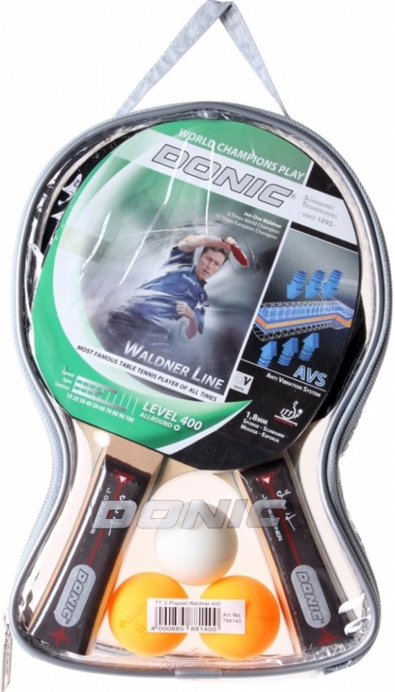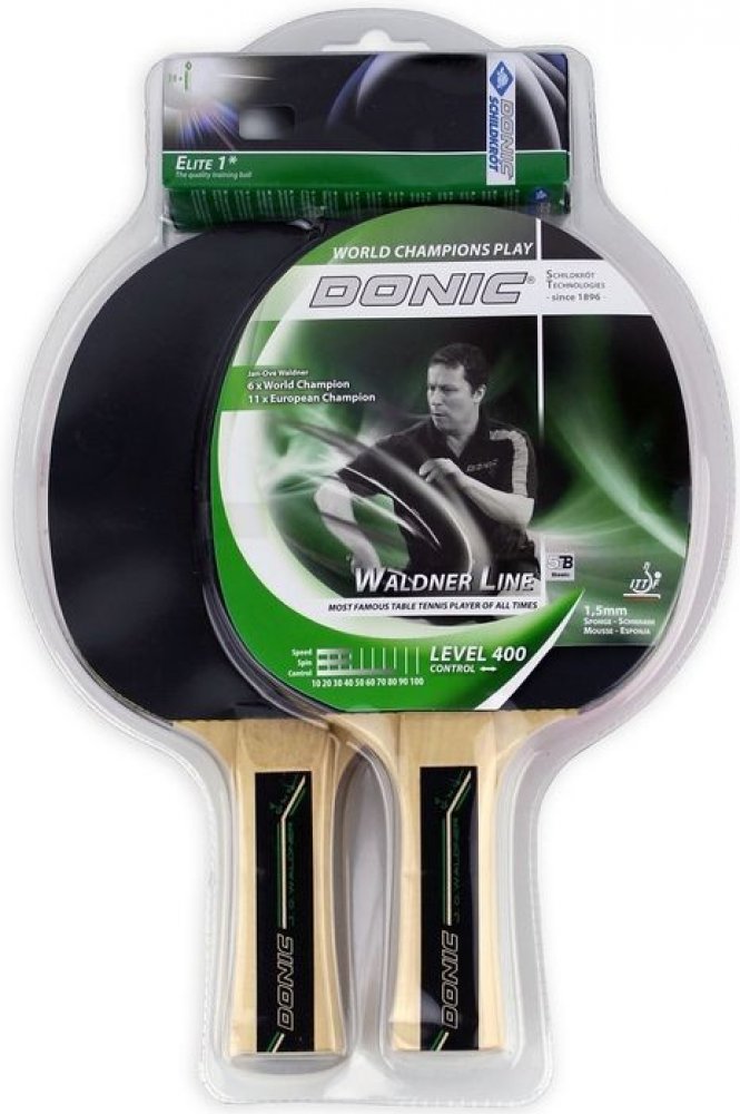 Set na stolní tenis DONIC Waldner 400 set - sada dvou pálek DONIC Waldner 400 a tří míčků Elite 1*. Technická data: