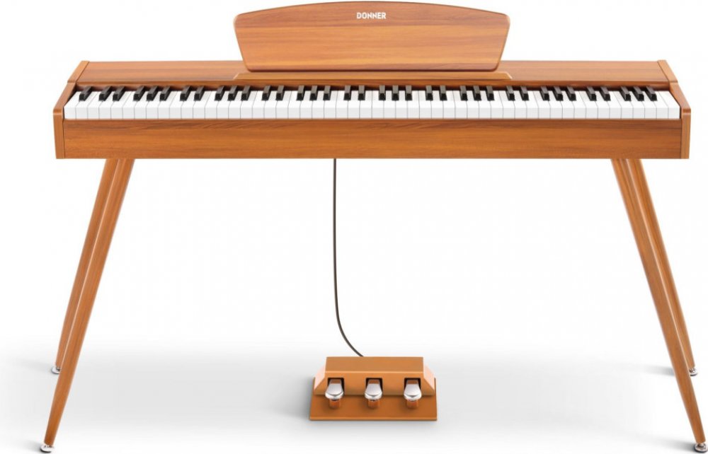 DDP-80 od Donnera je perfektní digitální piano pro ty, kteří si chtějí užívat hru na klavíru za dostupnou cenu. Má přesný zvuk klavíru, který díky použitému čipu Dream zní přesvědčivě dobře. Nechybí nabídky s možnostmi nastavení nebo dokonce funkce nahrávání; DDP-80 je jednoznačně zaměřen na purismus. Vyvážená 88-klávesová klaviatura s kladívkovým mechanismem zprostředkovává velmi příjemný pocit z hraní. Tenká dřevěná konstrukce stojí na čtyřech nohách, které zobrazují nástroj s elegancí a stylem. Navíc vypadá nadčasově stylově! Díky výkonnému 2x 20-wattovému stereo reproduktorovému systému vytváří kvalitní audio které zaplní místnost. A abyste mohli hrát v tichých chvílích, je integrován i konektor pro sluchátka. Digitální piano vyniká také jako hlavní klaviatura v kombinaci s DAW, díky USB MIDI rozhraní. DDP-80 je vybaven skládacím stojanem na noty, do kterého se namísto notového záznamu vejde i tablet, a třípedálem s funkcí Sustain, Soft a Sostenuto, které ještě více zvýrazňují vaši hru na klavír.