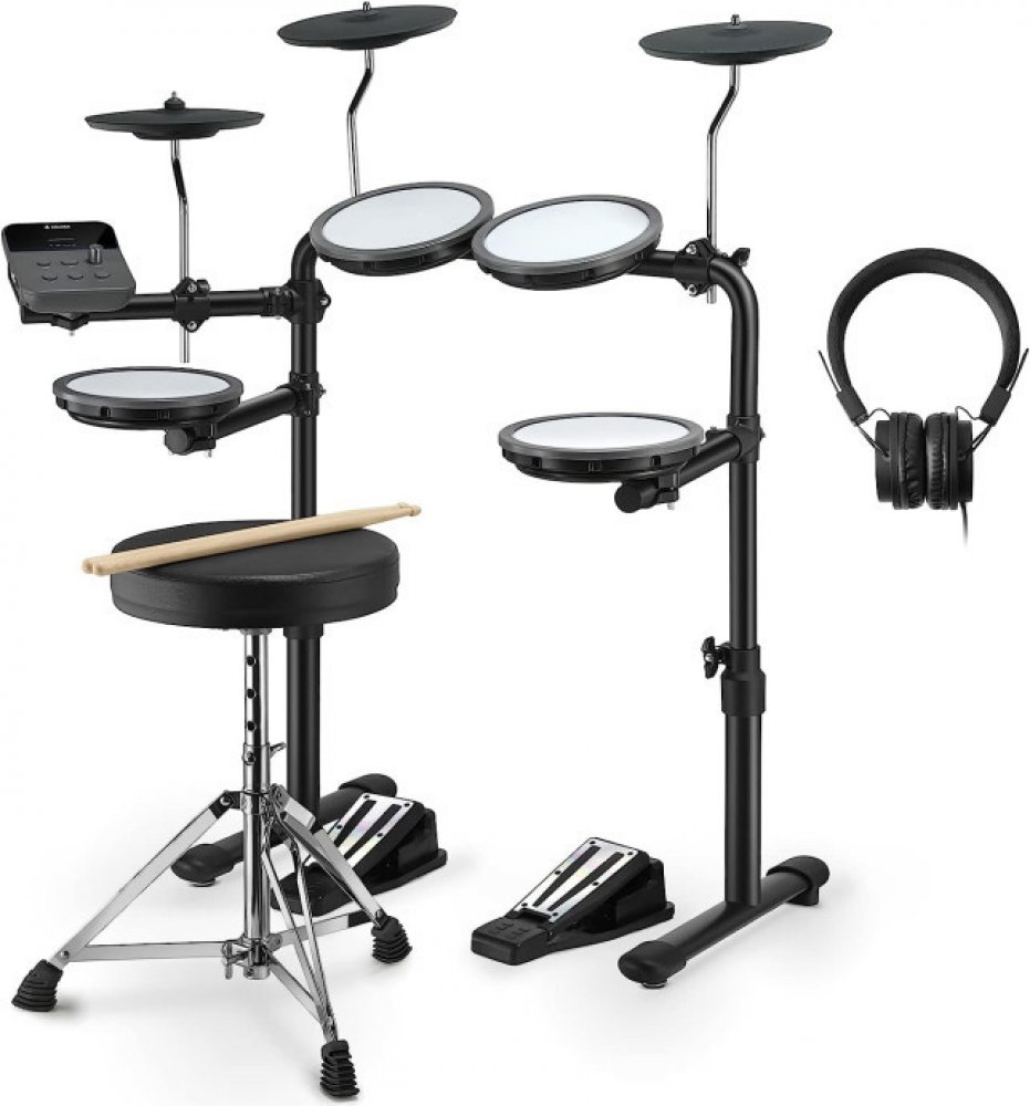 Máte doma začínajícího bubeníka? Pak budou elektronické bicí Donner DED-70 správnou volbou. Jsou totiž přímo vyrobeny pro hráče ve věku 4-14 let. Kompletní set s hliníkovým rackem obsahuje 4 bubnové pady, 3 činelové pady s plnou úderovou plochou, pedály hi-hat a kick control a elektronický modul. Všechny bubnové pady mají velikost 6,5" a chlubí se síťovým povrchem. Dvojitá vrstva umožňuje flexibil...