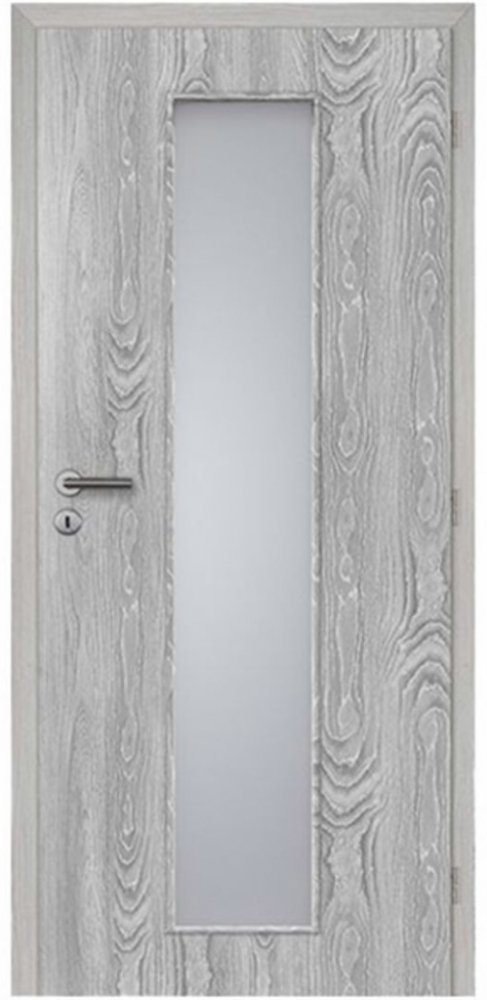 Doornite interiérové dveře LINEA sklo v povrchové úpravě fólie dekor dub šedý. Prosklené interiérové dveře 90 pravé s pevnější a odolnější výplní DTD jsou opatřeny WC zámkem.