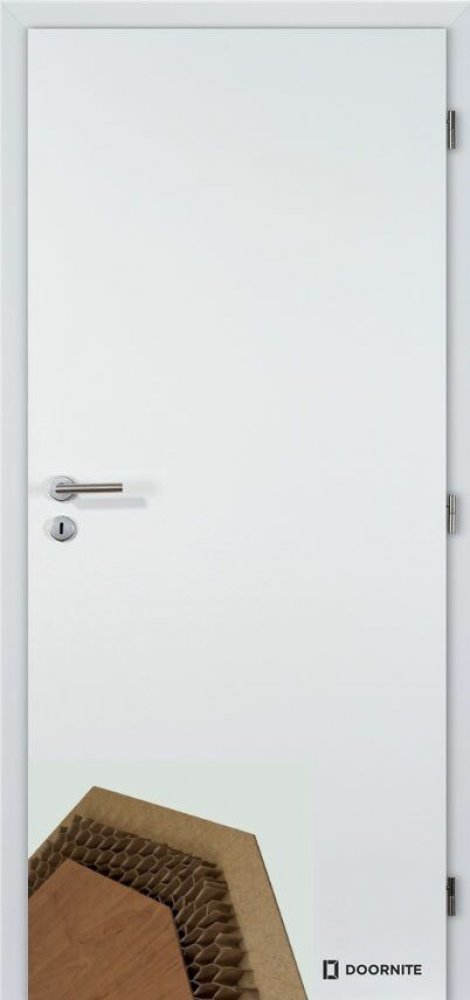 BASIC bílý lak (hladké bílé) jednokřídlé dveře Doornite plné s výplní papírová voština nebo lehčená DTD. Interiérové dveře s hladkým povrchem.