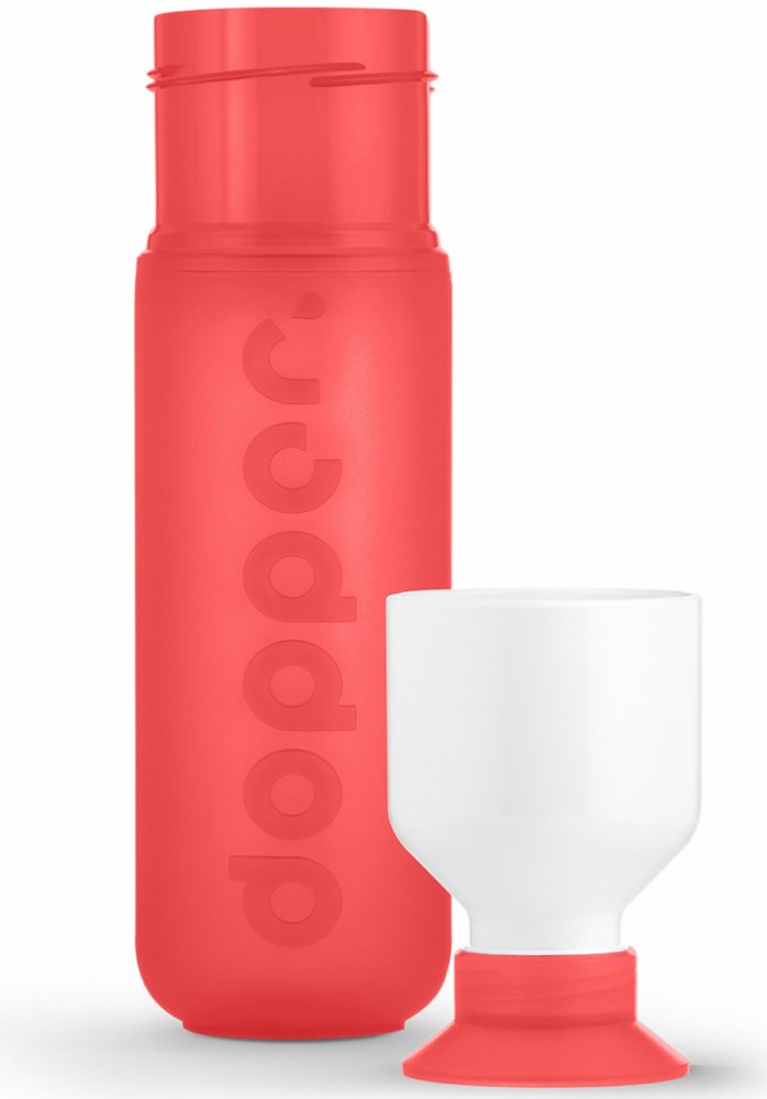 Znovu použitelné láhve na vodu, které Dopper vyrábí z vysoce kvalitních plastů a oceli, pomáhají snižovat tyto environmentální problémy.