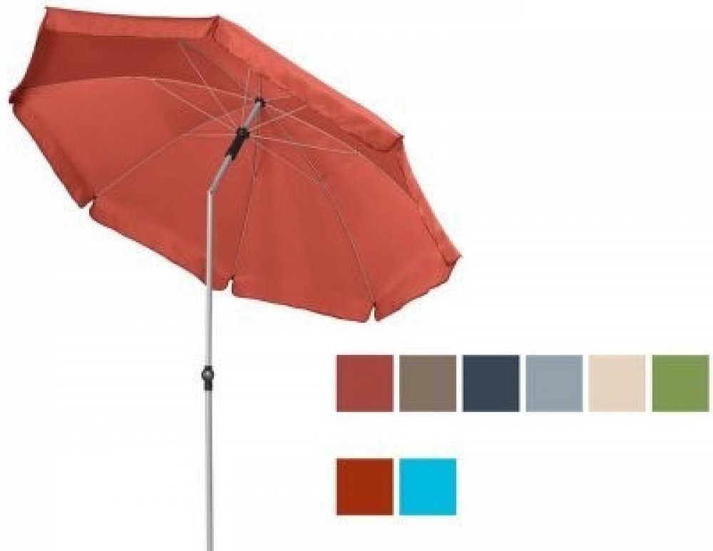ACTIVE 2 m – naklápěcí balkónový a plážový slunečník šedá (kód barvy 846) ACTIVE 2 m – naklápěcí balkónový a plážový slunečník. Tento stabilní slunečník je ideálním společníkem na pláž, k rybníku nebo bazénu. Stabilní ramena z U-profilů a rám slunečníku je vyroben z oceli ošetřen práškovou barvou. Navíc má možnost dvoustranného naklápění. Potah je vyroben z 100procent polyesterové tkaniny odolné povětrnostním vlivům s dobrou UV ochranou 50 plus . Informace o produktu: kruhový tvar střechy nastavitelná výška: ano váha balení: cca 2,53 kg velikost slunečníku cca 2 m Rám: průměr tyče: 22/25 mm doporučené zatížení nejméně 30 kg velikost balení: cca 19 x 19 x 125 cm ocelový rám slunečník lze naklápět na obě strany podchozí výška: cca 195 cm celková výška otevřeného slunečníku: cca 225 cm Potah: 100% polyesterová tkanina SPF 50 plus stálobarevnost 5 plus odolný povětrnostním vlivům potah je k dispozici v různých barvách