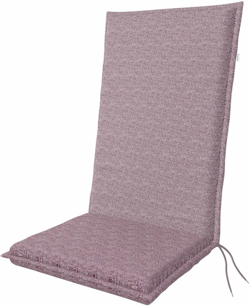 Zahradní polstr Doppler Art 4043 na křeslo a židli s vysokou opěrkou má moderní look se vzorem rybí kosti. Tento komfortní sedák má krásnou vínovou barvu v pastelovém odstínu a je v provedení s obšitým lemem. Velmi snadno jej zafixujete k nábytku pomocí nastavitelné stuhy se sponou za opěrkou a dvou tkaniček v ohybu.