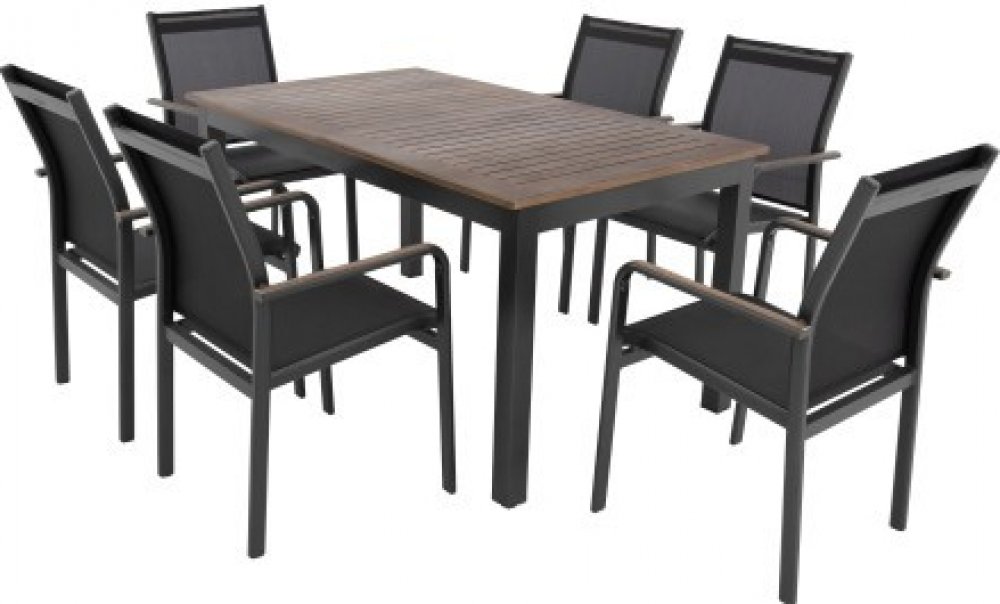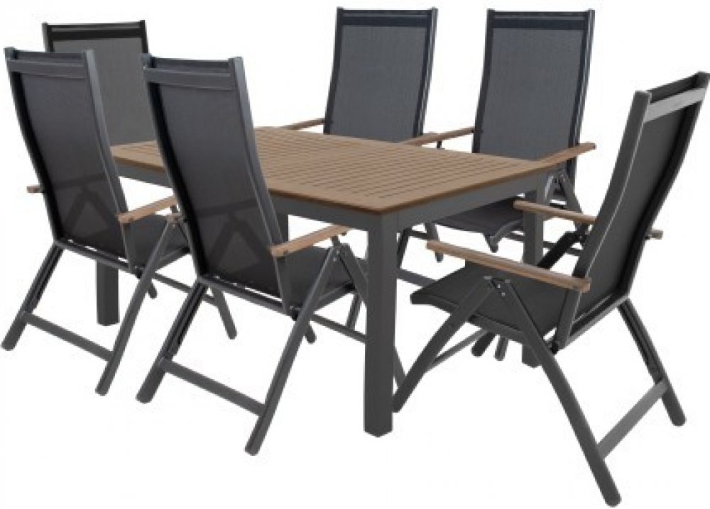 Moderní hliníková souprava EXPERT WOOD zahrnující stůl Expert Wood Plus a šest polohovatelných křesel ze stejné kolekce je vhodná pro všechny, kdo chtějí proměnit svou zahradu či terasu v zónu odpočinku a relaxace. Souprava je vzhledově atraktivní díky práškovému nástřiku v tónu tmavého dřeva, který je použitý na desce stolu a područkách všech křesel. Spojení elegantního designu, kvalitních mater...
