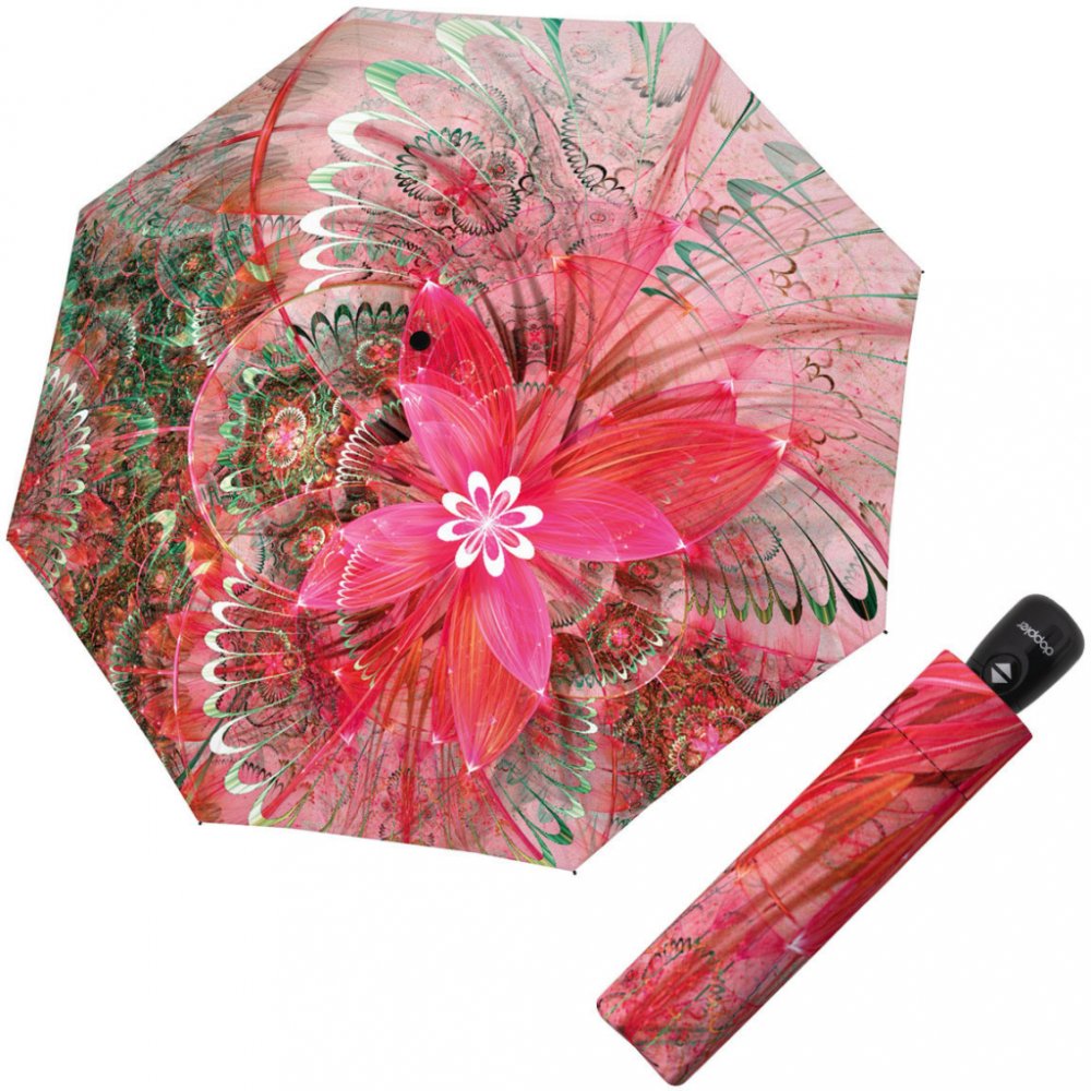 Dámský deštník DOPPLER disponuje plně automatickým ovládáním, kdy otevření i zavření probíhá jedním tlačítkem. Jeho konstrukce byla vyrobena z odolné oceli. S plastovou rukojetí se pohodlně drží v ruce. Skládací model je kompaktní a může být uložen v tašce, batohu nebo jiném příručním zavazadle. Klíčové vlastnosti produktu Doppler Fiber Magic Imperial Celestial Dámský deštník DOPPLER s plně automatickým systémem Praktický skládací model Konstrukce zhotovená z oceli Rukojeť je z lehkého plastu Jeho barva je červená a růžová Průměr střechy deštníku: 104 cm Délka ve složeném stavu: 29 cm Hmotnost: 345 g