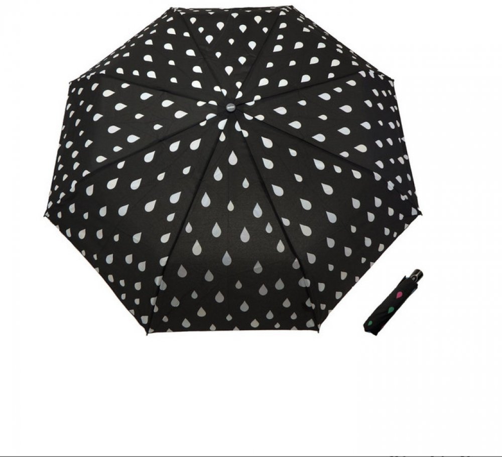 Dámský plně automatický větru odolný deštník s magickým efektem - deštník za deště mění barvu. Když je skládací deštník suchý, kapky na deštníku jsou bílé. Při kontaktu s vodou se kapy zbarví.