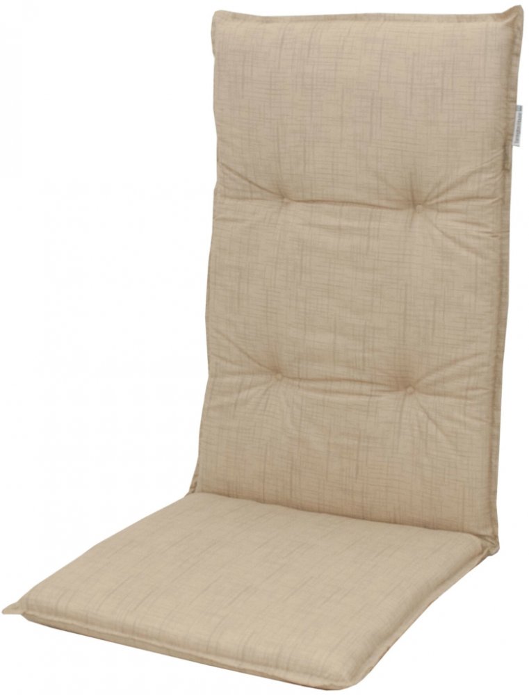 LIVING 6995 vysoký - polstr na židli a křeslo Polstr s vysokou opěrkou na zahradní nábytek řady LIVING je v provedení s obšitým lemem, prošitý kroužkově 4x v opěradle. Uchycení je pomocí posuvné spony. Díky sponě si můžete nastavit velikost dle rozměru a druhu židle, spona je pevná a nevytahuje se. Upevnění sedáku je pomocí dvou tkaniček v ohybu polstru. Síla polstru je optimální pro všechny druhy...