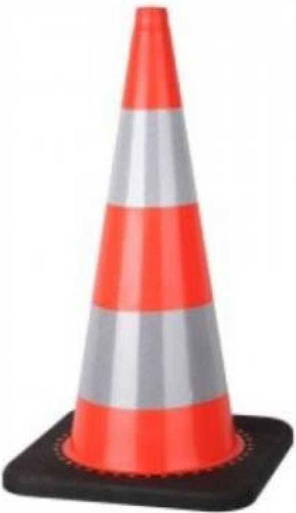 Dopravní kužel 75cm Black base rexlení pruh měkčené PVC TEMKA. Silniční kužel a kužely dopravní se používá na místo kde řidič nesmí se svým vozidlem vjet. Dopravní kužely se umisťují v řadě za sebou a mají tedy stejný význam jako podélná souvislá čára. Kužel silniční se používají zejména k dočasné reorganizaci dopravního zařízení, např. při opravě silnice, dopravní nehodě apod. Dopravní a silniční kužely jsou vyrobené z materiálu aby při střetu s autem nedošlo k poškození automobilu. Výhoda u těchto dopravních kuželů je v tom že se dají dobře skládat na sebe (stohovat) a tím zabírají malo místa. Proto je snadné dopravní kužely umístit do zavazadlového prostoru auta na korby.