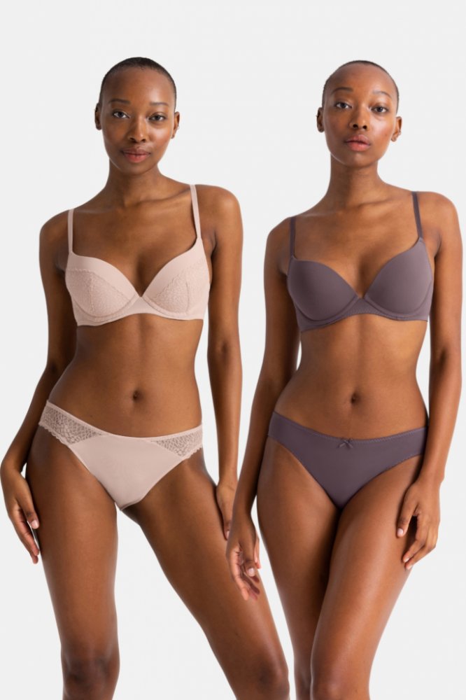Sada podprsenek push-up Dorina Amora se skládá ze dvou podprsenek v béžové a fialové barvě. Pořiďte si podprsenky, které opticky zvětší vaše poprsí až o jednu velikost.Push-up podprsenka vykouzlí svůdný dekolt a všité kostice prsa pěkně vytvarují. Samozřejmostí jsou nastavitelná ramínka a praktické zapínání vzadu na háčky. Podprsenka je skvělou volbou pod trička a blůzky s výstřihem, váš dekolt tak bude zaručeně neodolatelný. Push-up podprsenka vám poskytne maximální komfort po celý den, udělejte si radost novým kouskem spodního prádla od německé značky Dorina.Kód dodavatele: FXPG0032LA130