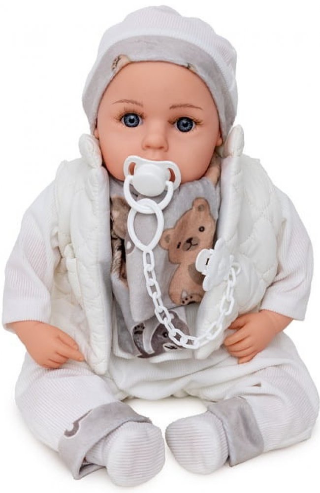 Panenka mluví česky, díky mluvícímu modulu. Pěkná panenka s milou tvářičkou, která vypadá jako opravdové miminko, má realistický vzhled miminka. Panenka má také veselý výraz v tváři a usmívá se, má velké oči. Je oblečená do měkkého barevného oblečku. Tělo panenky je látkové, konce rukou, nohou a hlavička jsou gumové. V sadě se nachází čepička, oblečení, česky mluvící modul, dudlík a ponožky, vše je vyrobeno z kvalitních materiálů a to velmi ...