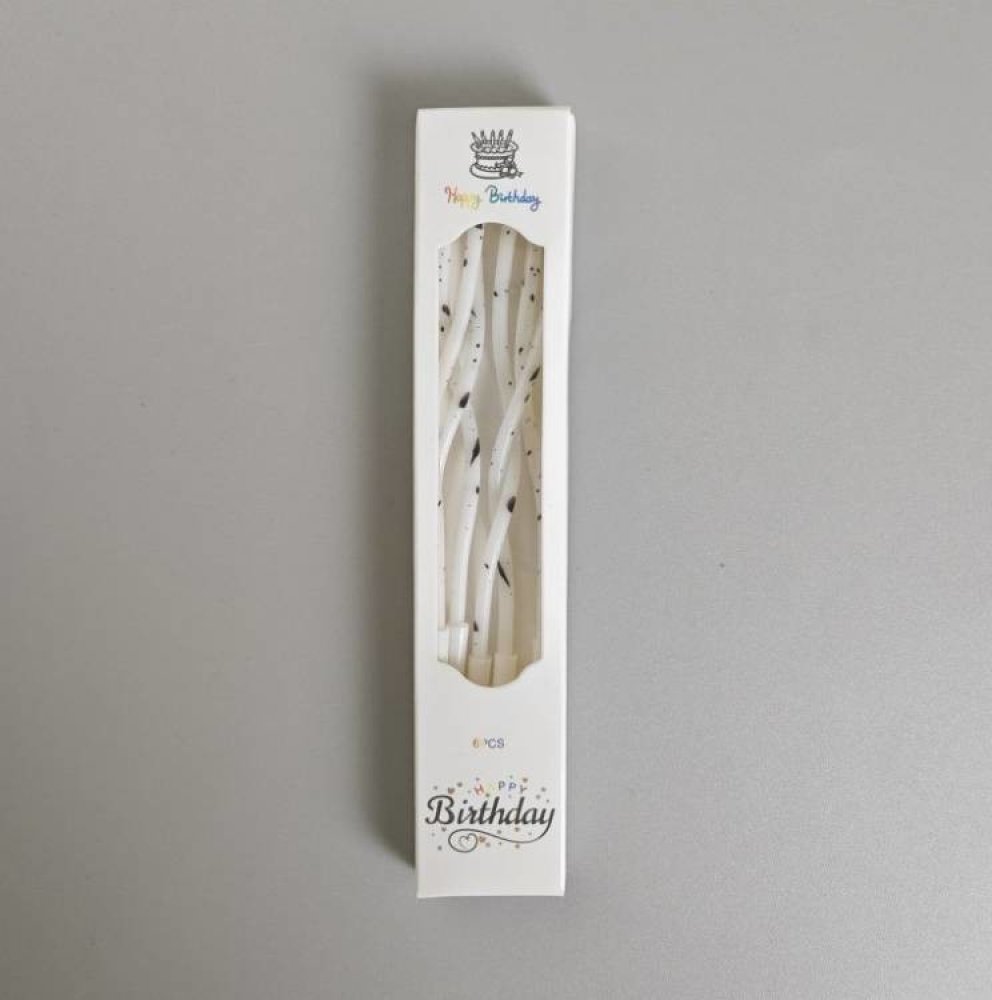 Dortisimo Svíčky spirálové bílé s černým zdobením (6 ks) - Dortisimo Svíčky spirálové bílé s černým zdobením (6 ks) z kategorie Heureka.cz | Bydlení a doplňky | Bytové doplňky | Doplňky do kuchyně | Pečení | Dortové svíčky a fontány koupíte na Dortisimo.cz. EAN: 2024000009175