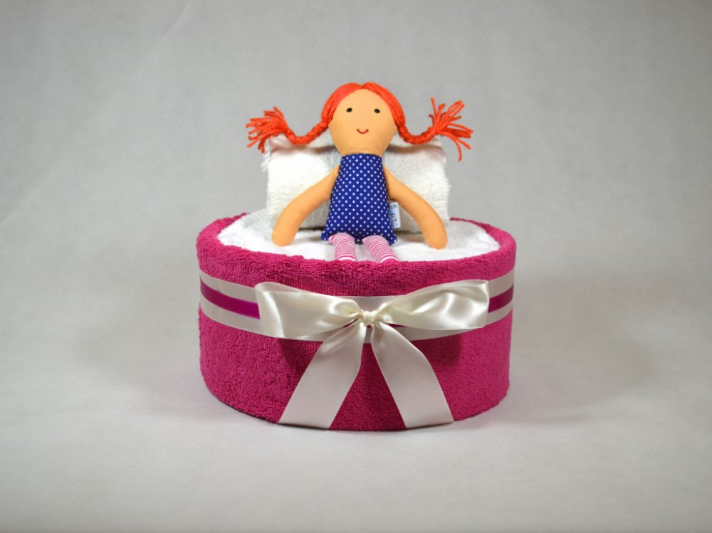 Dort bude ozdobený barevně sladěnými mašlemi a zabalený v celofánu. Dort je vytvořený bez použití špendlíků, dítě může dort rozbalit samo. Průměr dortu je 28 cm. V případě nedostupnosti některého z produktů bude tento nahrazen jiným ve stejné nebo vyšší hodnotě. Pokud byste si chtěli vybrat barvu mašle napište nám ji do poznámky nebo nás kontaktujte:-).