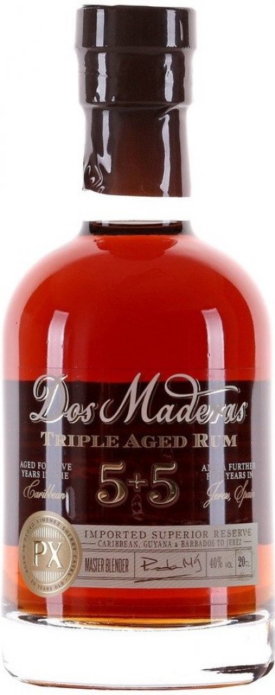 Desetiletý rum Dos Maderas 5+5 je unikátní tím, že prochází třístupňovým procesem zrání. Díky němu má nový, velmi zajímavý chuťový profil. Prvních 5 let zraje v Guyaně, poté 3 roky ve španělském Jerez v sudech po sherry Dos Cortados a ještě 2 roky v sudech po sherry Don Guido.
